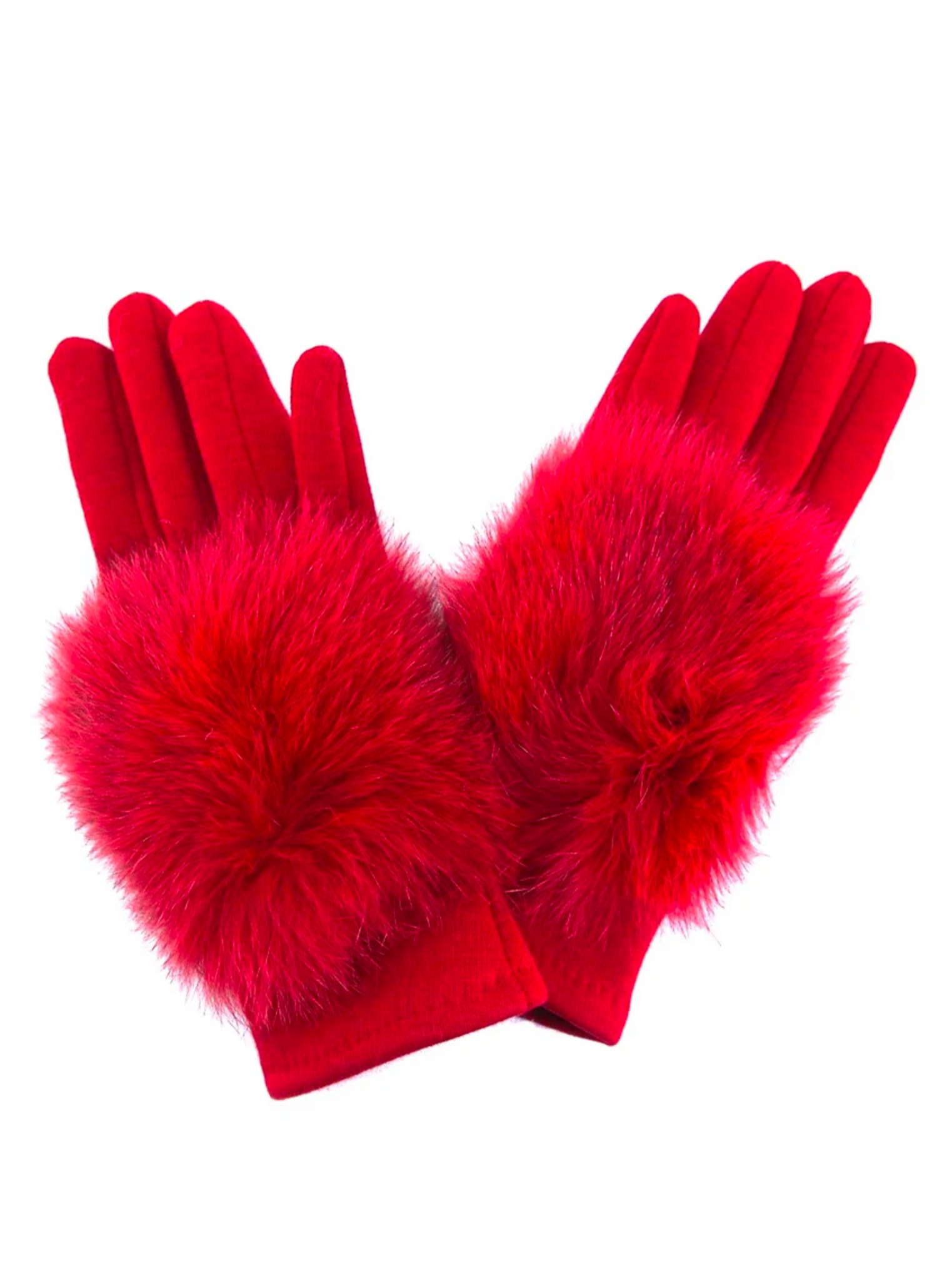 Red Knit Gloves Fox Trim M/L Crafted from soft woven knit, these gloves deliver warmth and comfort for chilly days. The distinctive fox fur trim adds a touch of elegance and luxury to your winter wardrobe. Sized for medium to large hands, they offer a snug fit that keeps cold air out while maintaining dexterity.