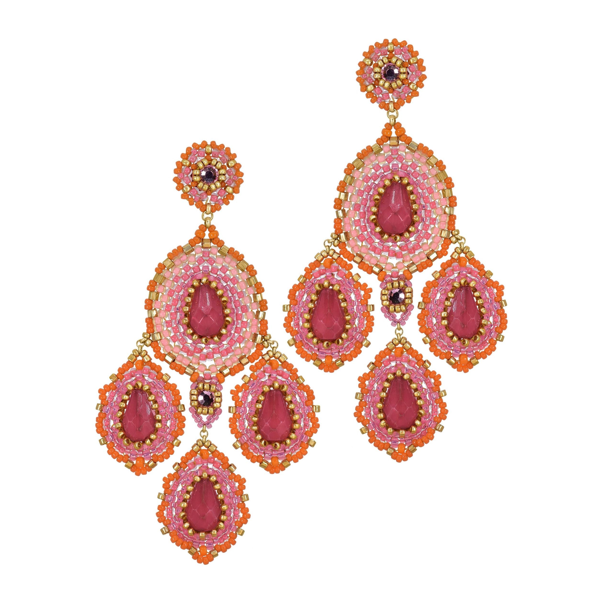 3" Crystal Miyuki Earrings - Pink/Orange