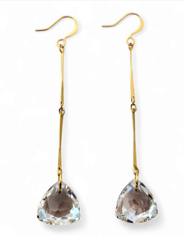 Vintage-inspired chain featuring authentic Swarovski Aurora crystals set in lustrous brass. This 2.6-inch piece captures the glamour of 1960s design with its iridescent sparkle and warm metallic finish. Perfect for adding a touch of retro elegance to any jewelry collection or styling project.