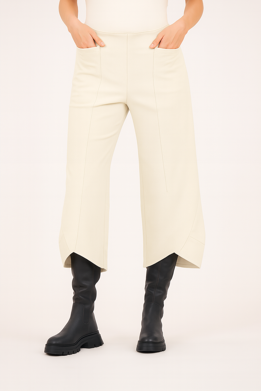 The Barrett Pant in Bone is expertly tailored from Porto's durable ponte knit blend for both structure and comfort. Featuring a zip-front closure and mid-rise fit, these pants offer a relaxed silhouette through full-length legs, accentuated by a distinctive divot detail at the front hem. Practical slit pockets at the high hip enhance both style and function, making this piece a refined addition to any wardrobe.