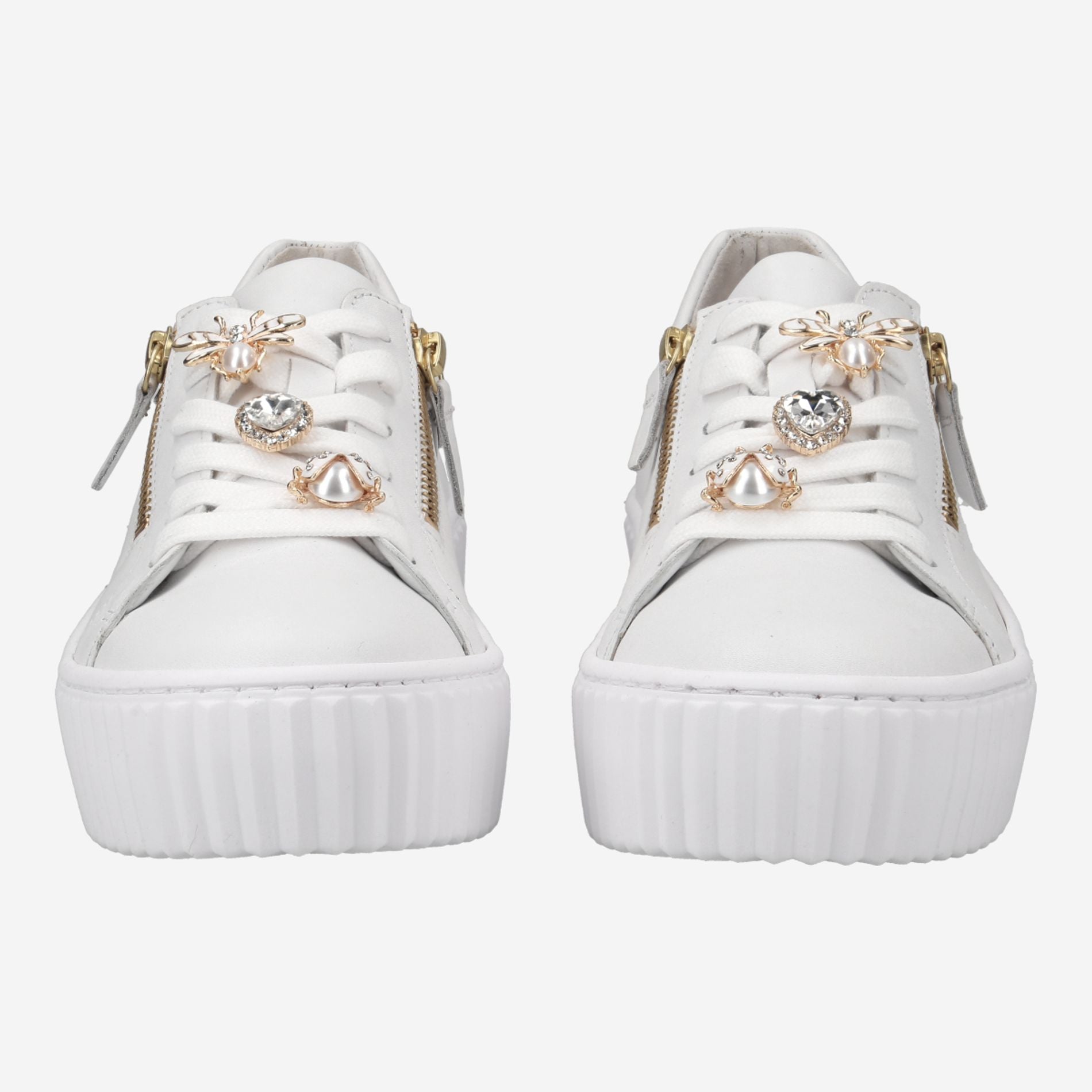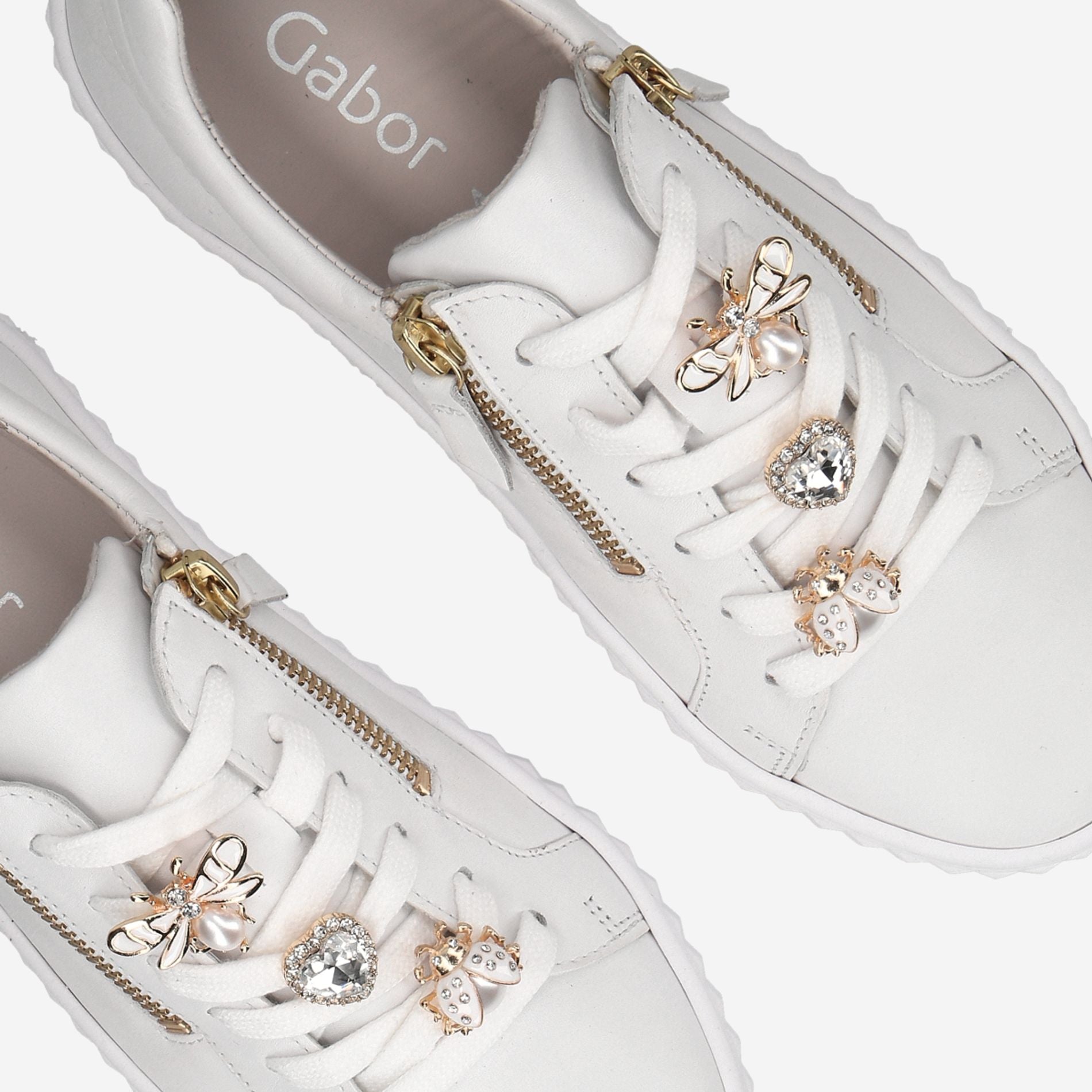 - 3 Decorative applications (buckles) on the lacing (removable)/ design: 1x bee, 1x heart (with gemstones), 1x beetle