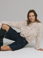 Relaxed boxy fit crew neck in soft pointelle knit fabric. The textured weave adds visual interest while maintaining breathability, making it perfect for layering or wearing solo. Sand tone pairs effortlessly with any wardrobe. Comfortable everyday essential with a modern, understated silhouette.
