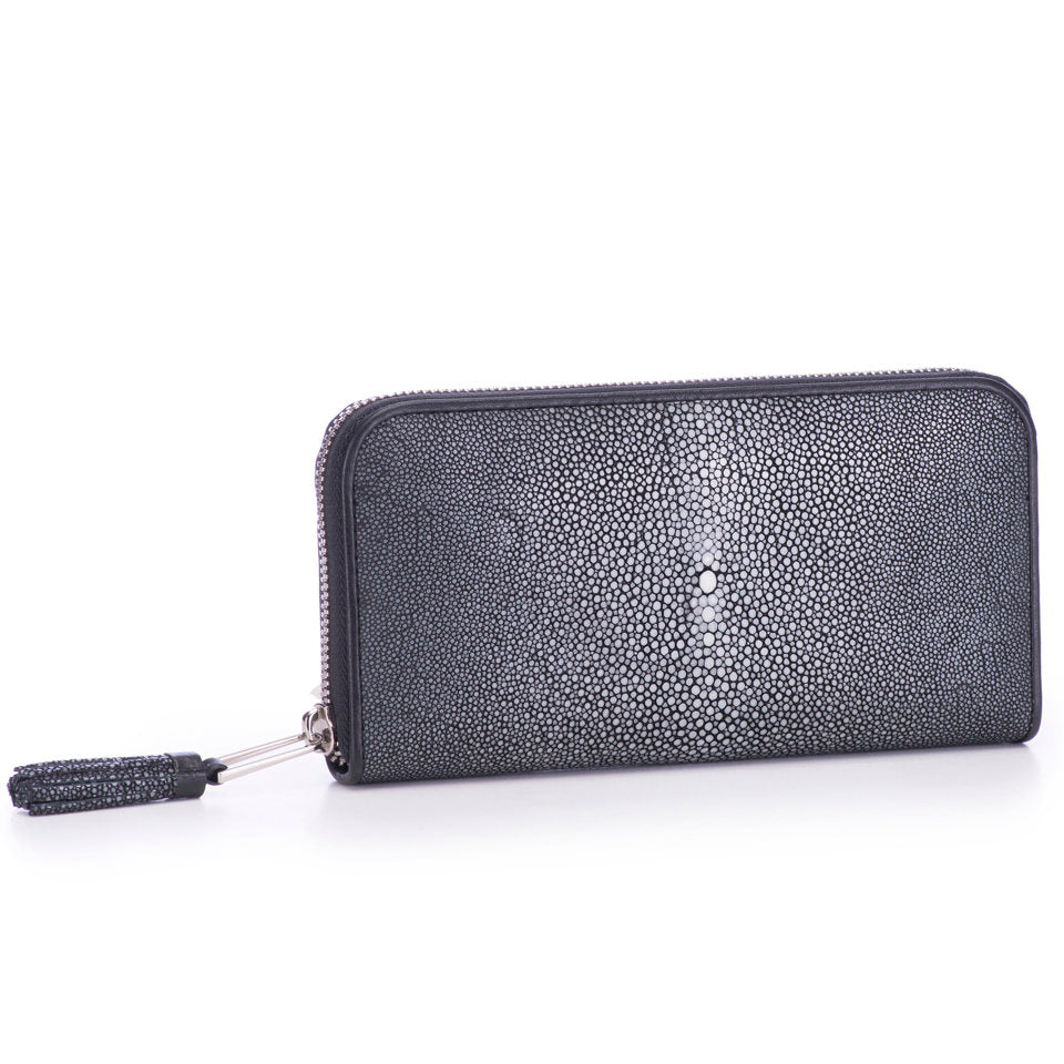 The Cora wallet combines security with elegance, featuring a rich genuine shagreen exterior. This adaptable clutch-style piece can be carried solo as a stylish clutch or used within your handbag as a wallet. It secures with a zip closure accented by a playful tassel. Inside, a leather interior provides generous storage with multiple compartments, including a zipped pocket and numerous card slots to keep your belongings expertly organized.
