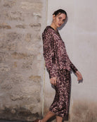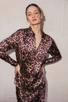 Daria French Cuff Silk Blouse - Mocha Leopard