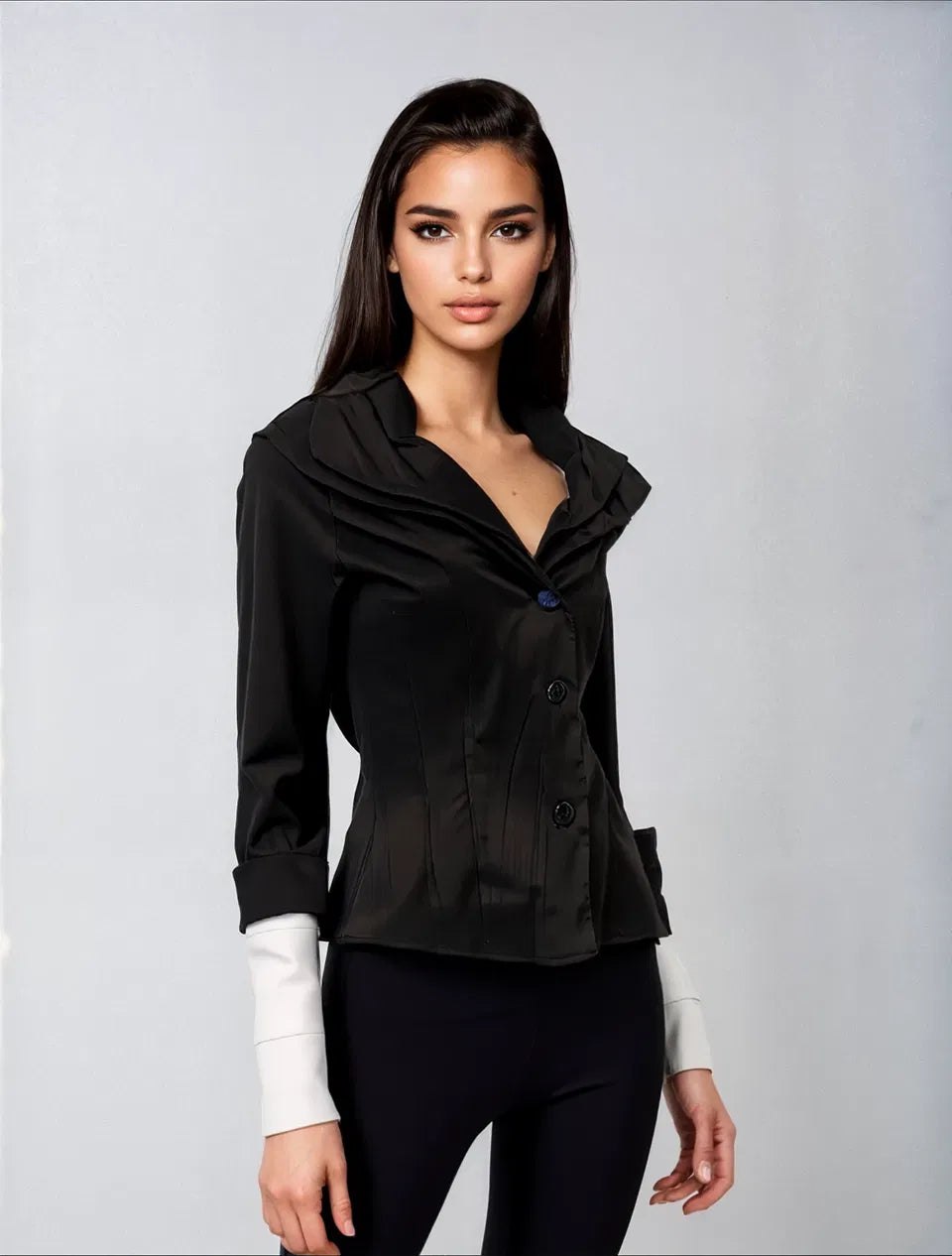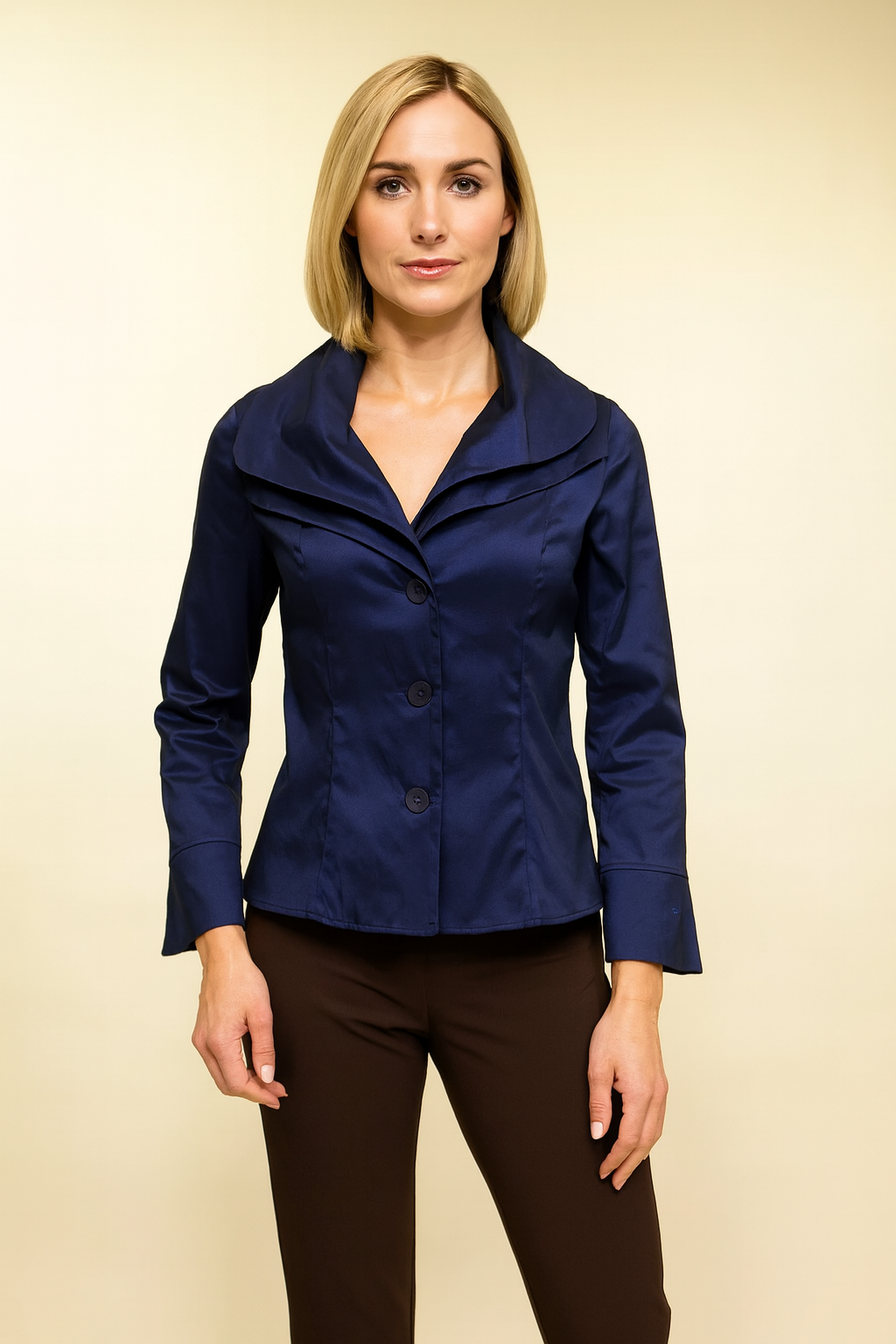 Get ready to turn heads with this Double Collar Jacket! Made with stretch dupioni fabric, this dressy blouse features wired double collars for a sophisticated touch. Embrace your unique style with this quirky and fun piece.