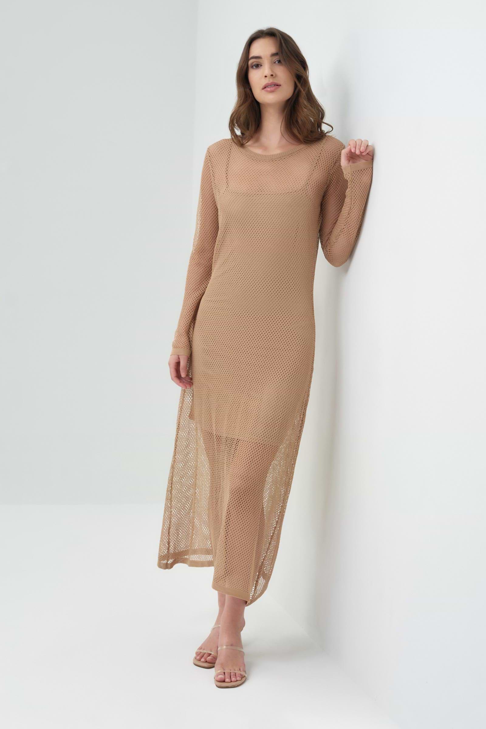 Treat yourself to the luxurious appeal of the Ava Open Knit Maxi Dress. With its delicate knit overlay and camel underlining, this lightweight dress is ideal for summer events. Whether cruising the Mediterranean or enjoying a walk through Mallorca, the Ava dress ensures you make a refined and exclusive statement.
