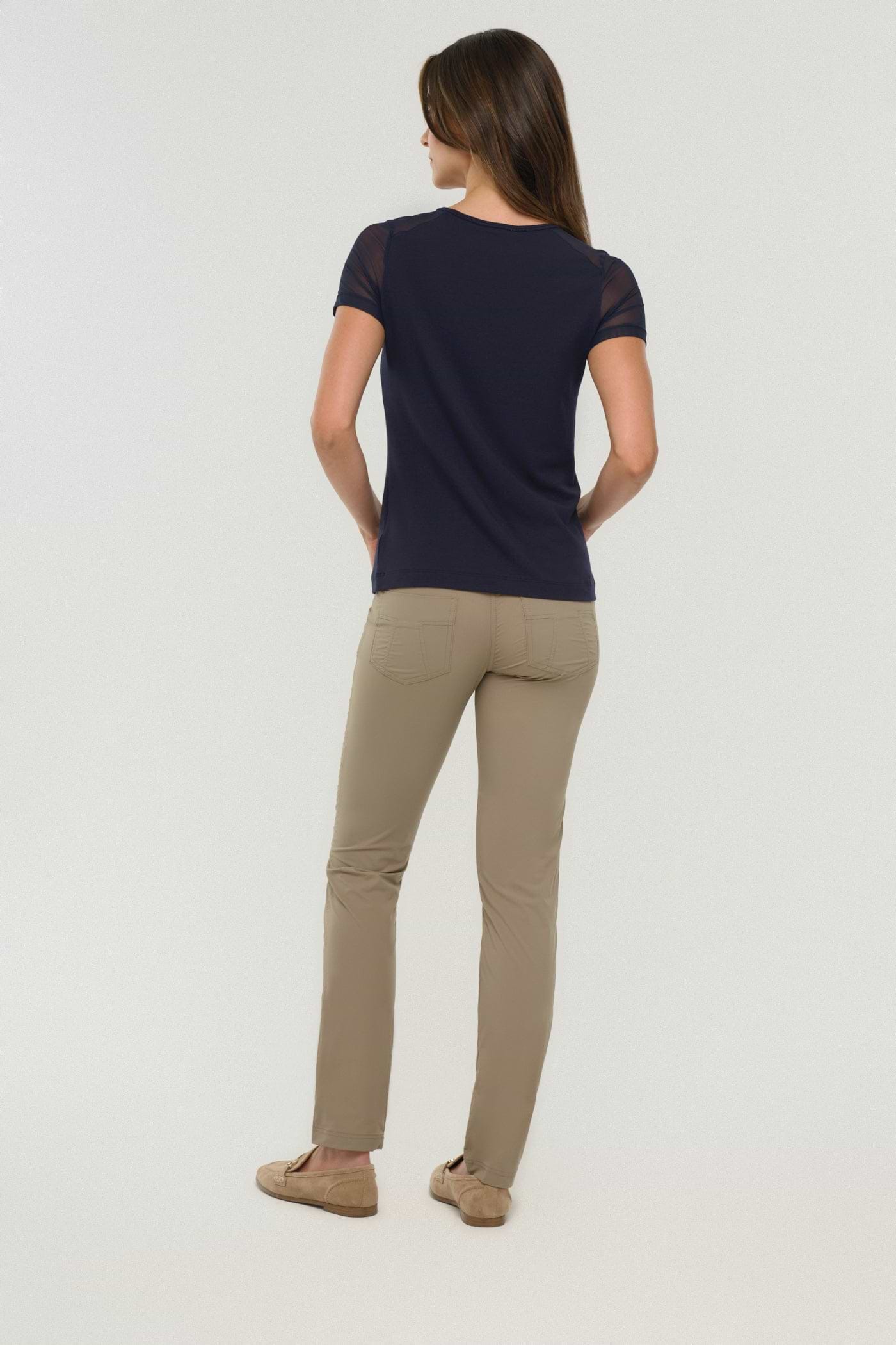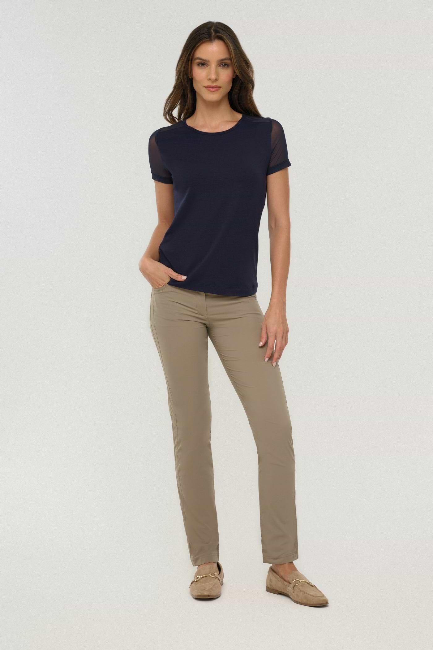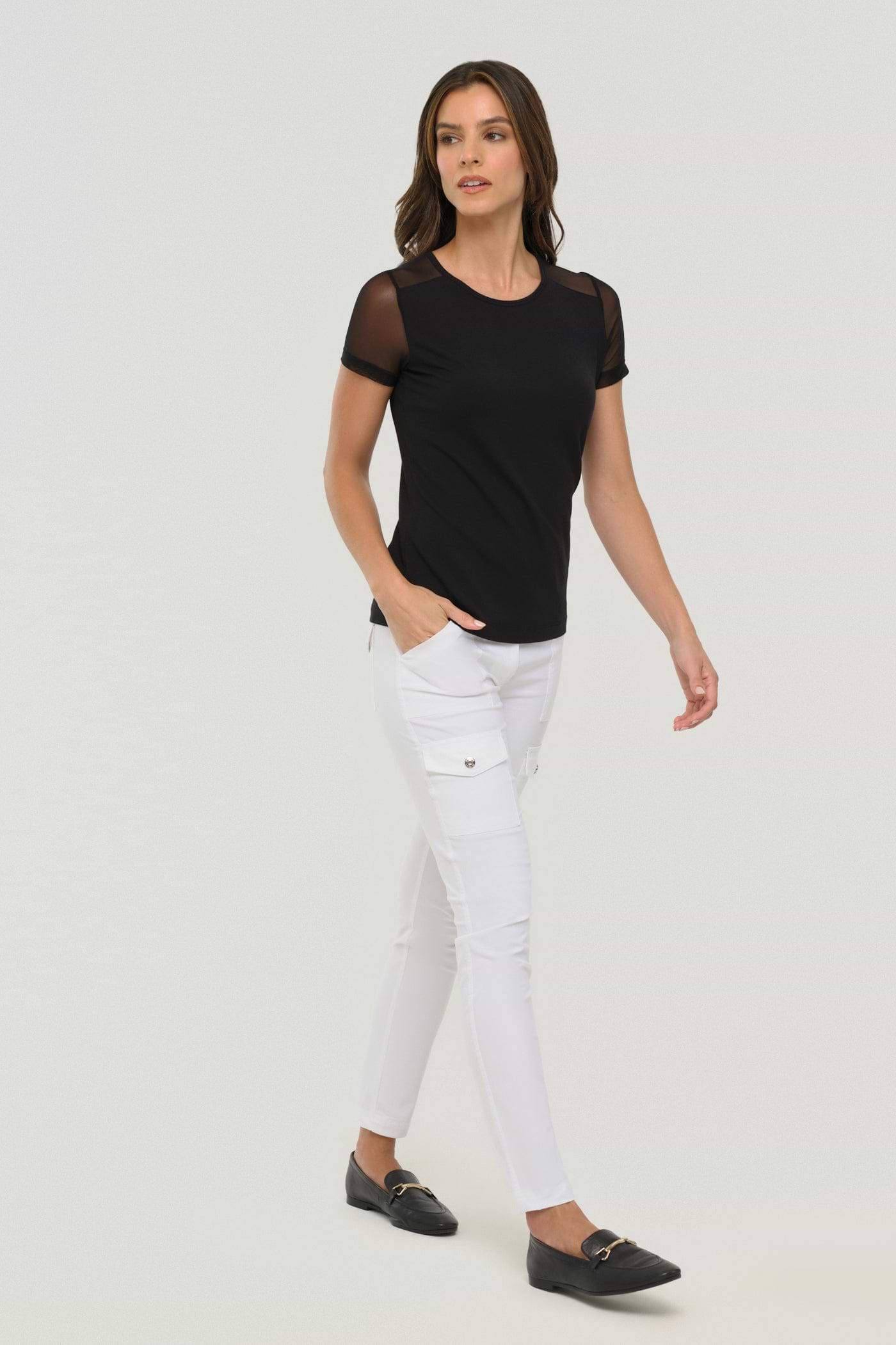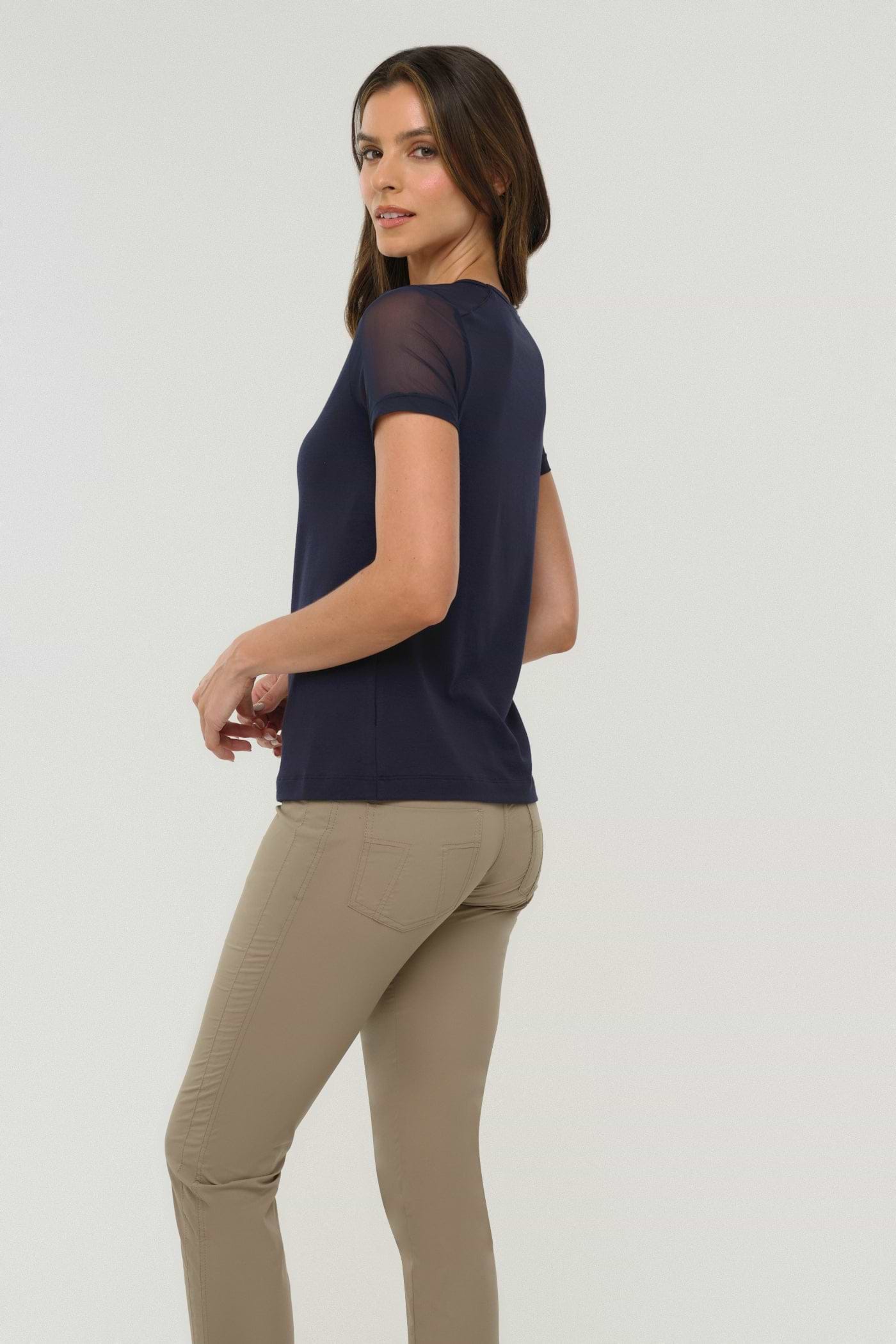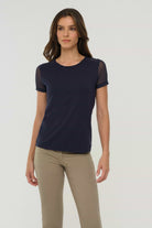 The Melissa Tee features airy mesh sleeves that keep you comfortable and stylish all day. Its wrinkle-free fabric and slim fit make it an easy choice for any occasion, ensuring you look polished without extra effort. Perfect for those who want a reliable, flattering tee that supports your busy lifestyle.