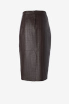 The Croco Pencil Skirt in Espresso reinvents a classic silhouette with a sophisticated crocodile pattern, adding subtle texture and depth. Designed for versatility, it pairs seamlessly with a crisp poplin shirt and matching suit jacket, delivering a polished and professional ensemble with minimal effort. Its tailored cut flatters the figure while offering a distinctive edge to your wardrobe essentials.