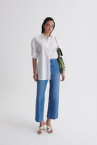 These Denim Cropped Jeans showcase a signature Scanlan Theodore silhouette, expertly merging classic Italian fabric with contemporary style. Crafted from washed indigo denim, their cropped, flared hem adds a refined touch to any wardrobe. Detailed with contrast topstitching and an embossed leather logo patch, these jeans offer subtle, distinguished accents perfect for elevating everyday elegance.