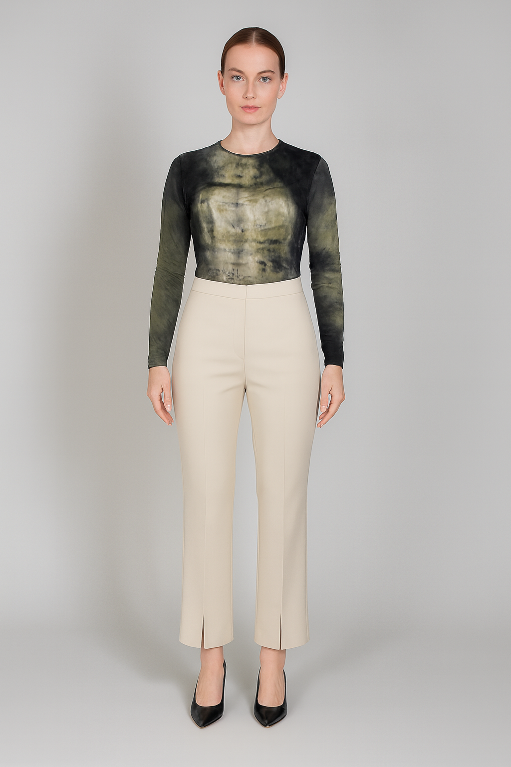 The Rif Raf Pant in Bone offers a refined ankle-length design crafted from Porto’s Ponte fabric, delivering exceptional comfort, warmth, and long-lasting durability. Its skinny fit is tailored for a sleek silhouette, complemented by a front ankle slit that enhances wearability with boots. Ideal for work, travel, or casual settings, these pants feature a discreet hidden front zipper for a clean, polished look.