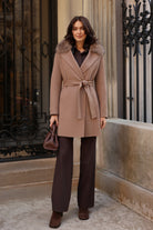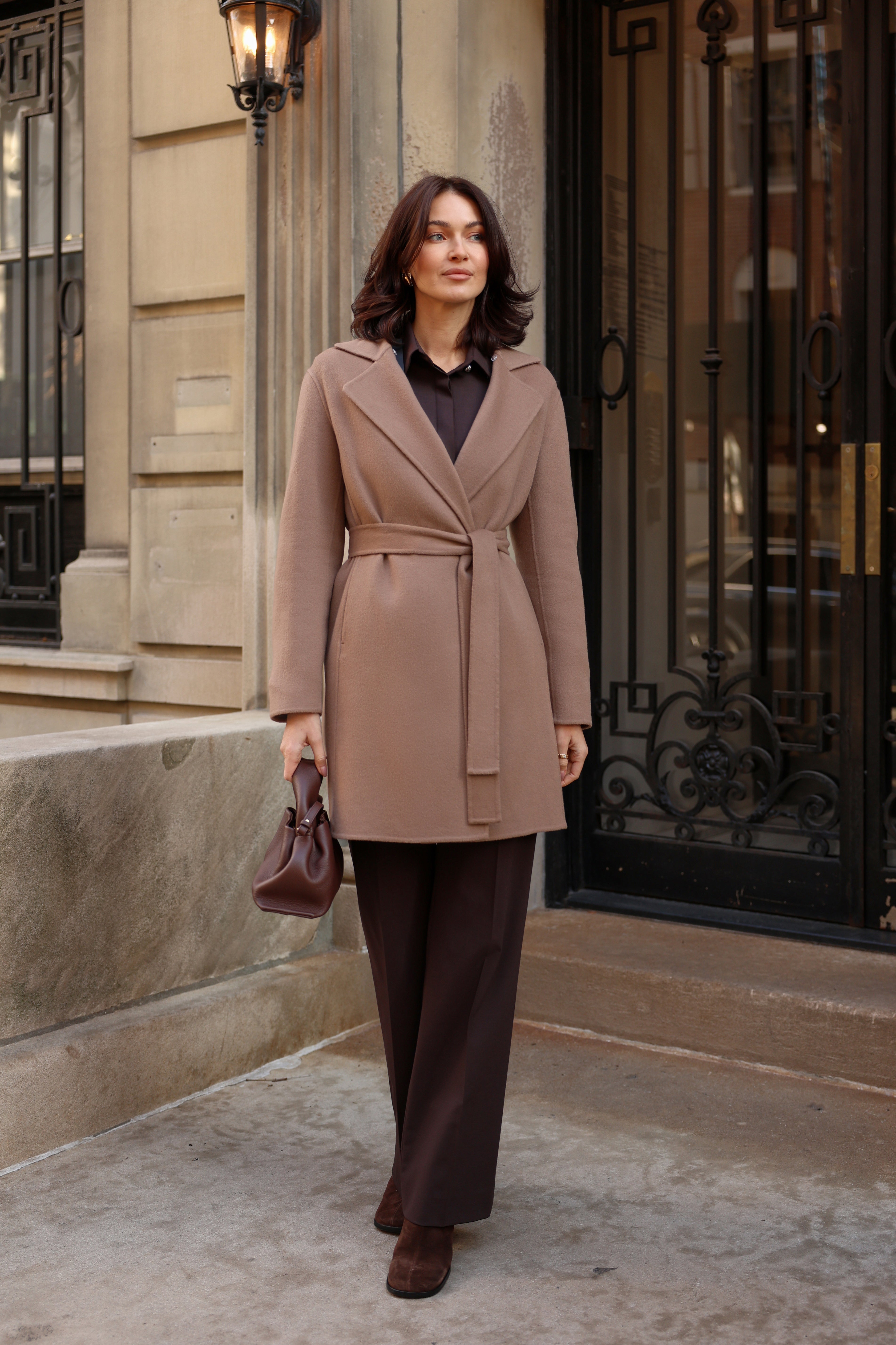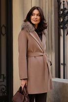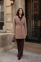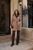 Cashmere Wool Belted Coat in Warm Taupe