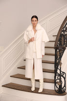 This short coat is crafted from luxurious unlined double-sided cashmere wool. It features a cape-inspired design, characterized by a wide and enveloping silhouette, elbow-length roll-back kimono sleeves, a lapel collar, and side inset pockets. Additionally, it includes a detachable fox collar for added versatility.