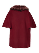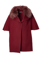 This short coat is crafted from luxurious unlined double-sided cashmere wool. It features a cape-inspired design, characterized by a wide and enveloping silhouette, elbow-length roll-back kimono sleeves, a lapel collar, and side inset pockets. Additionally, it includes a detachable fox collar for added versatility.
