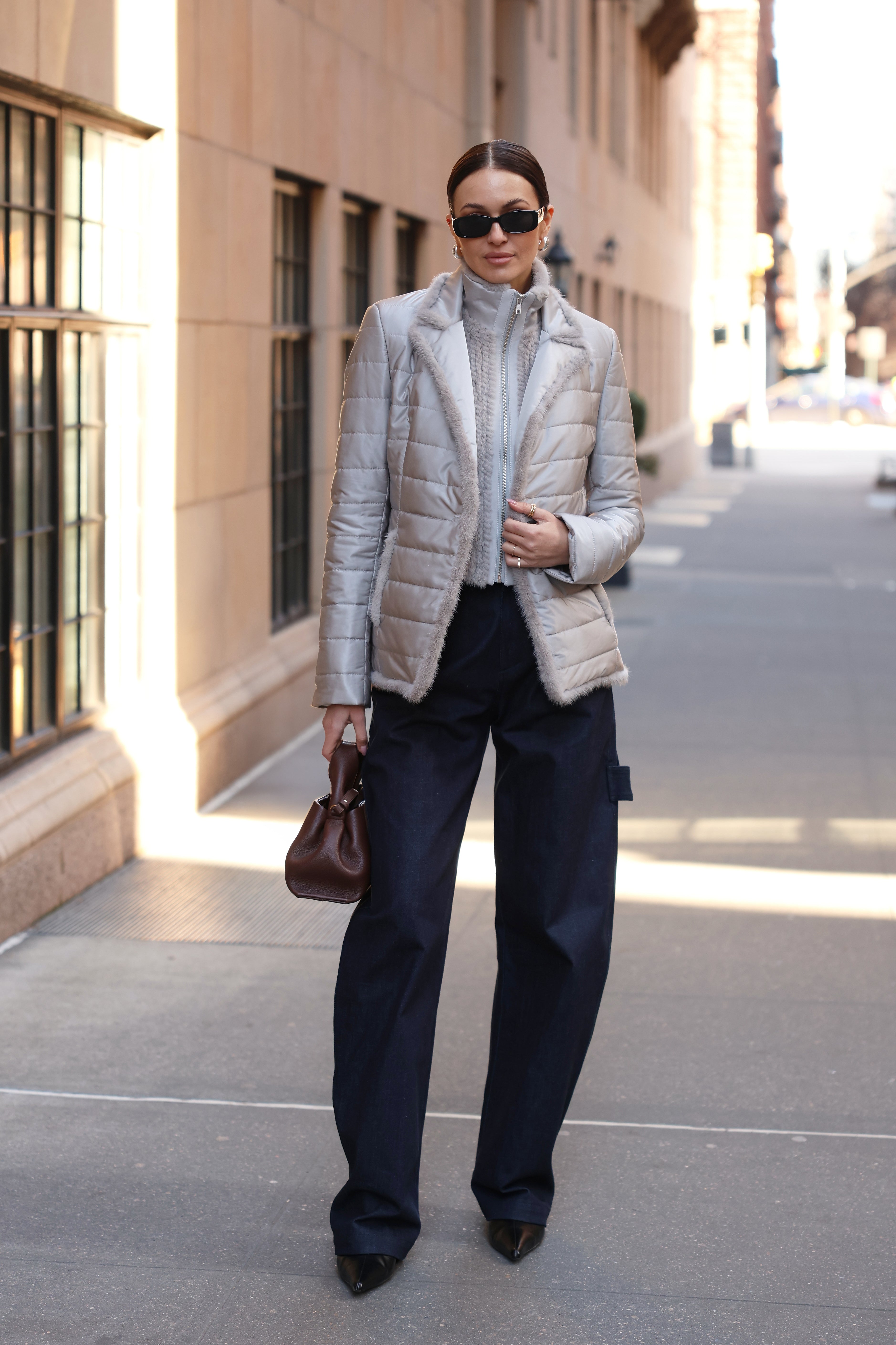Quilted Jacket with Mink in Platinum