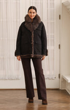 Reversible Coat in Technical Fabric to Rex Rabbit Fur in Black/Brown