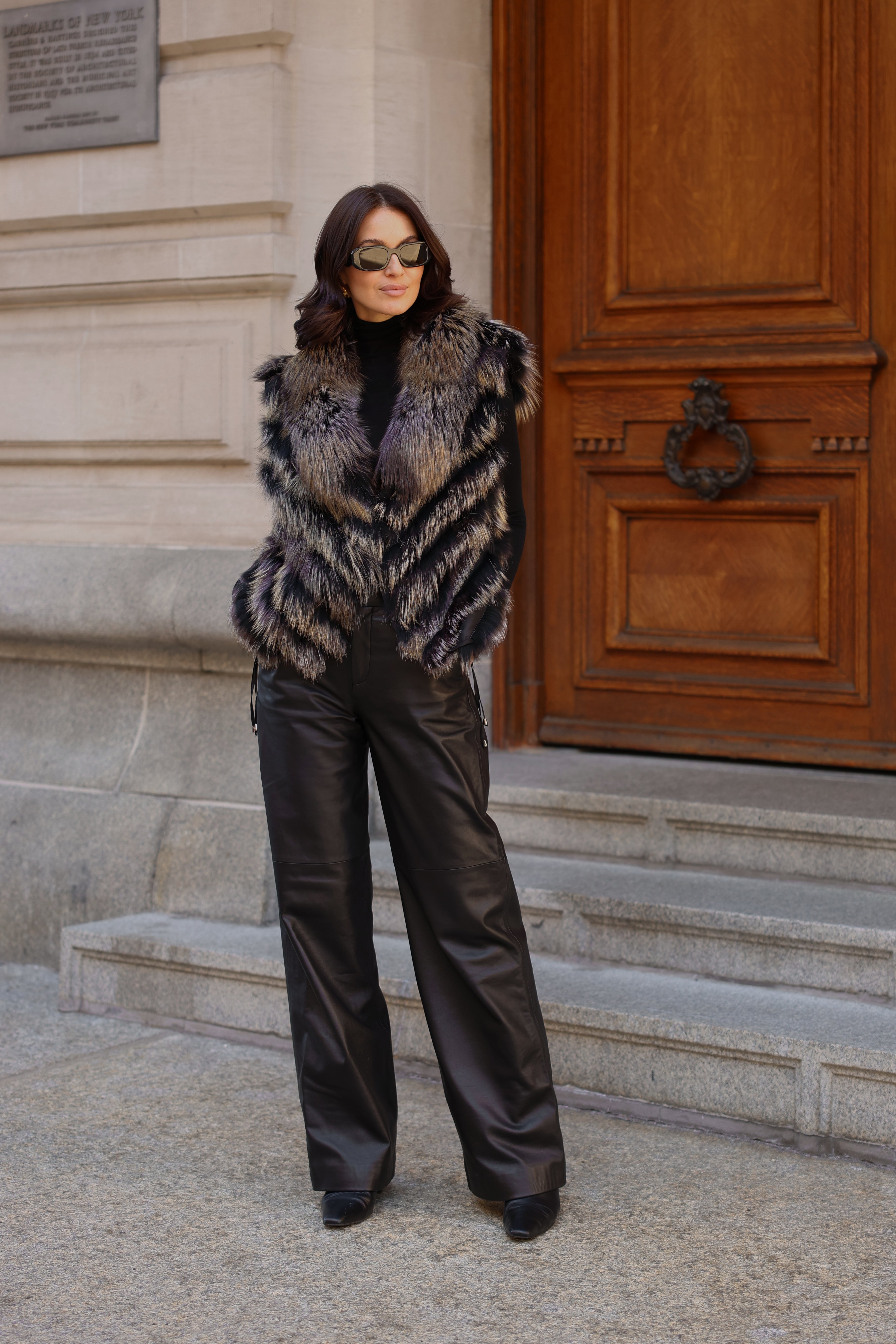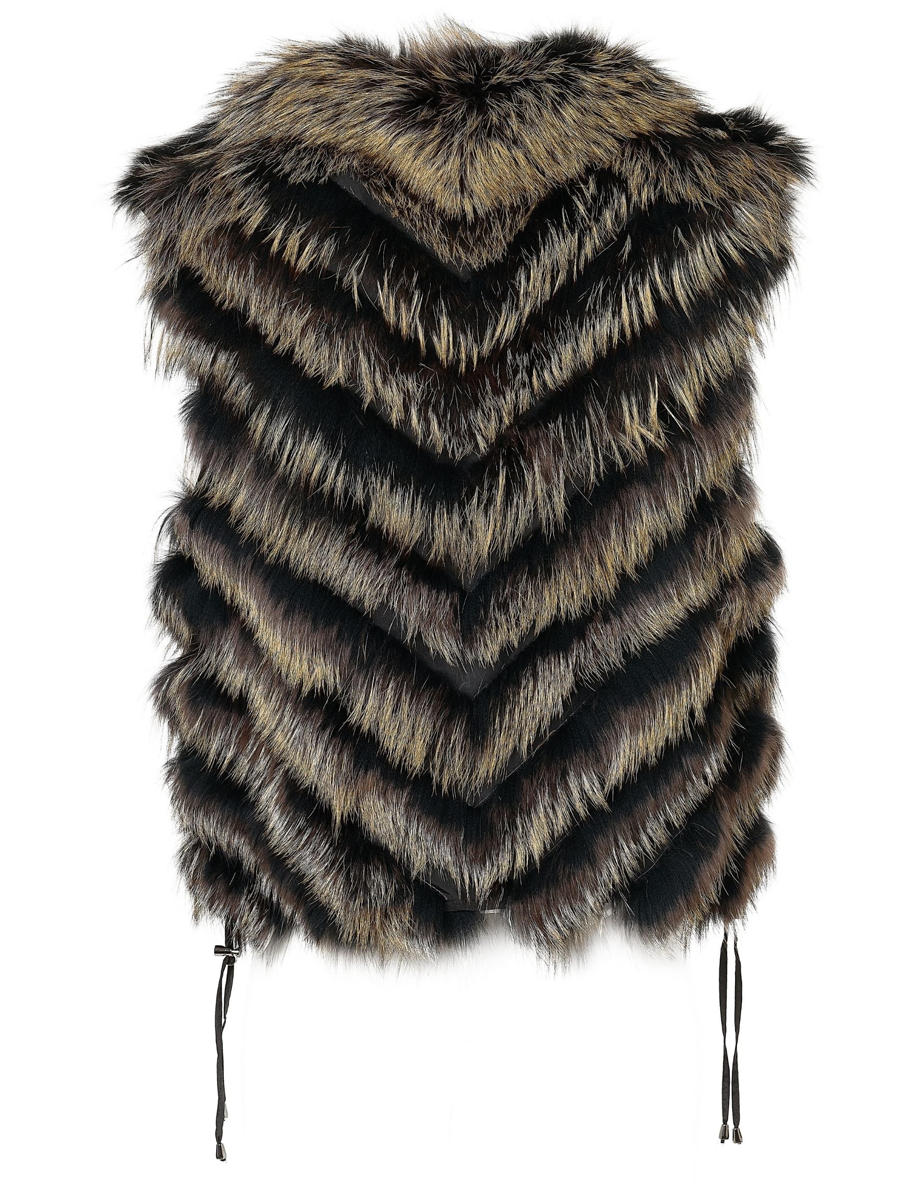 Reversible Silk to Fox Vest in Black Gold Bleach