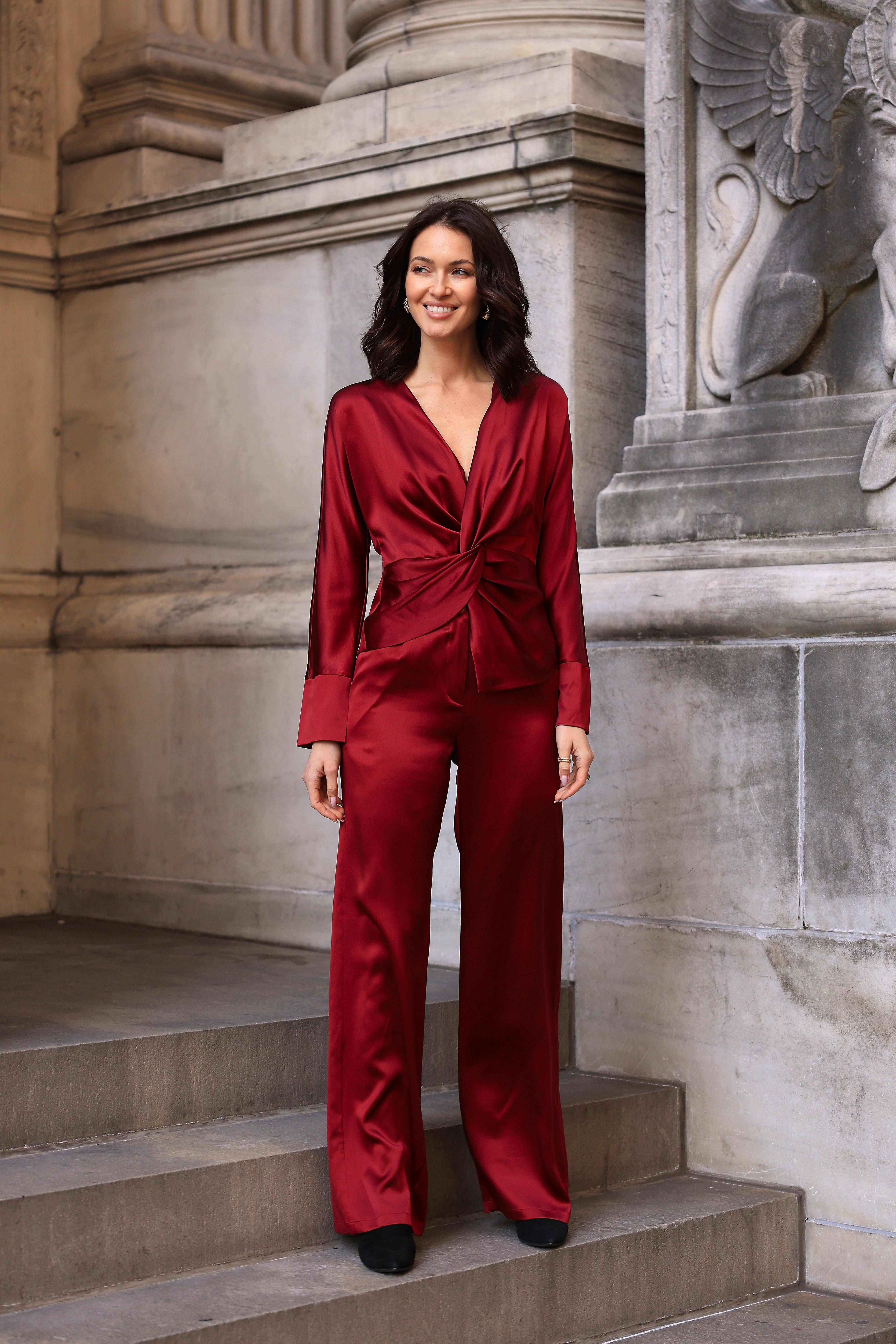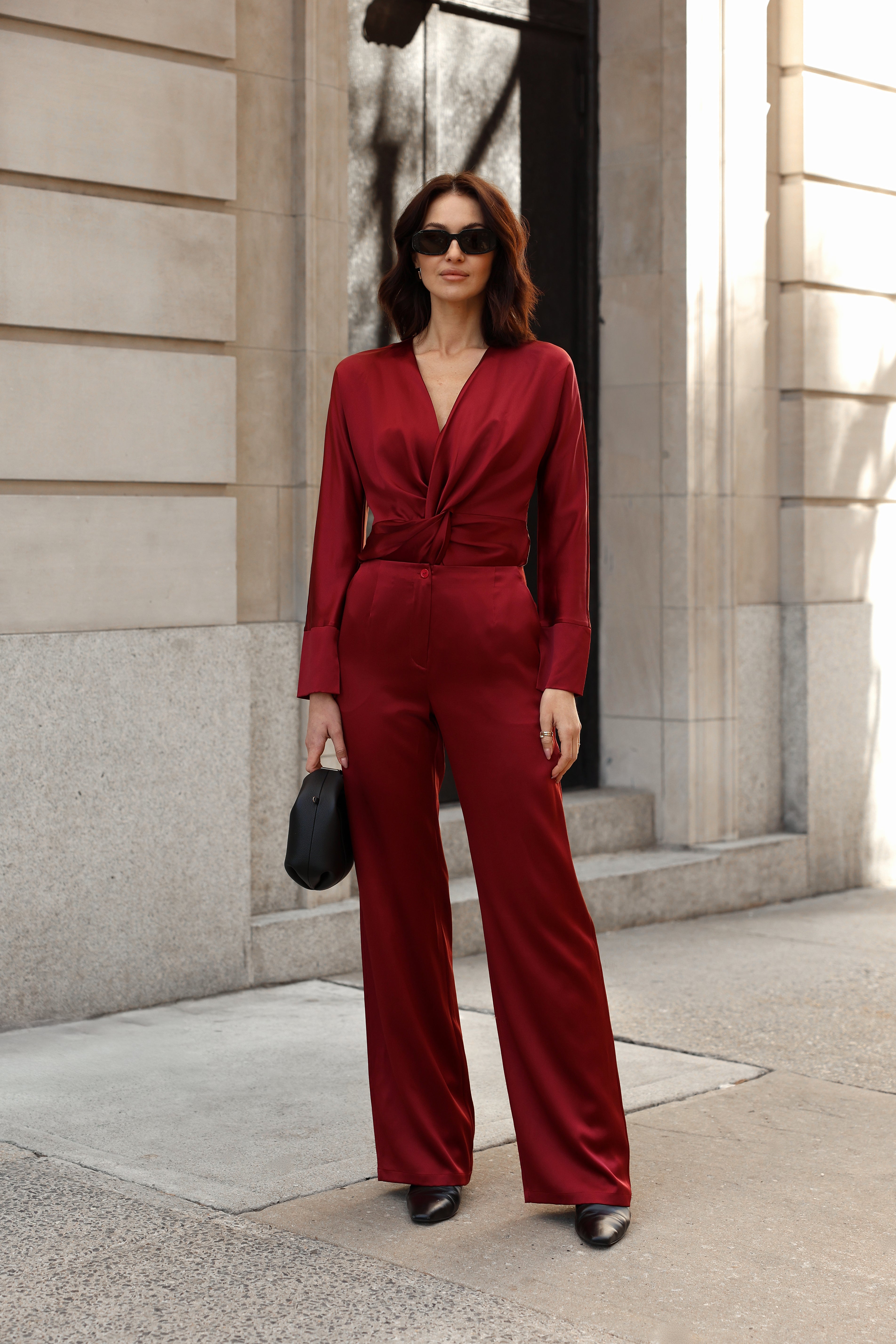 This new-season pant features a traditional tailored design with leg creases and waist darts. It is fitted at the waist and hip with a slightly wider leg for added comfort. Made from our soft sateen silk, the fabric has a compact weave that has been specially chosen for its structured form and beautiful drape.