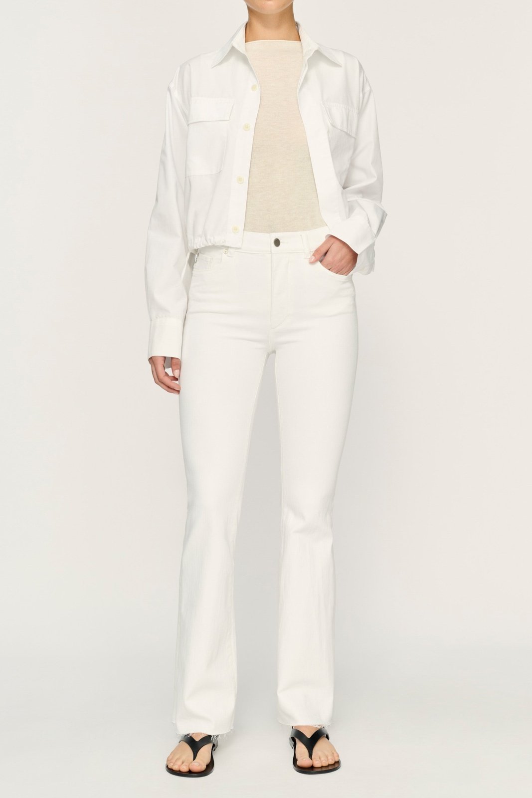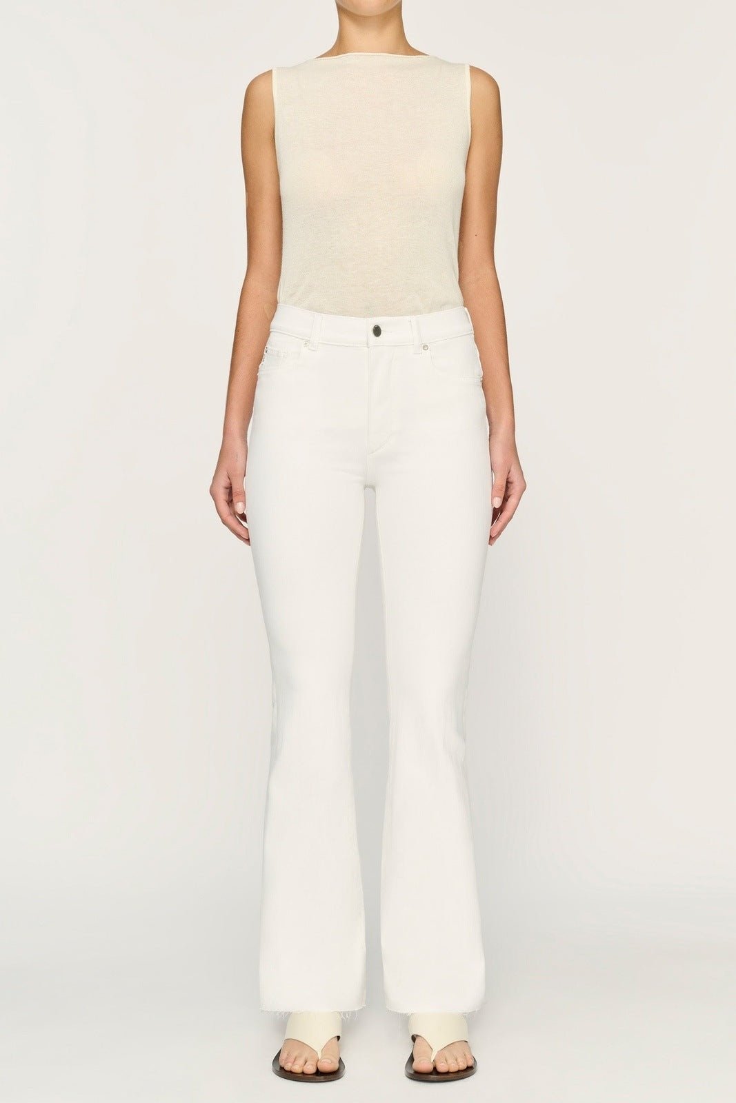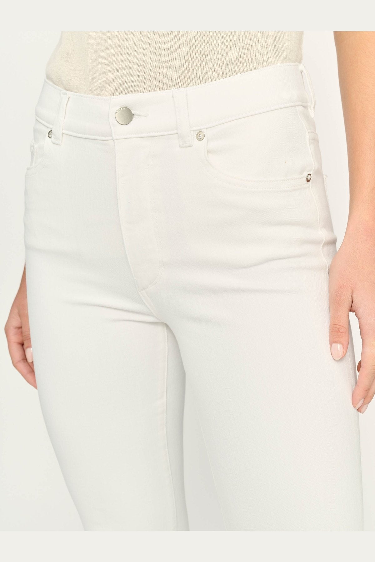 Sculpt, smooth, and conform to perfection with Bridget Boot High Rise Instasculpt 31.5. Made with innovative Instasculpt technology, these jeans give you a flattering fit with a high-rise, boot cut design and a 31.5" inseam. The fresh white denim is accented with brushed faux front pockets, silver hardware, and a raw hem for a clean, stylish look.