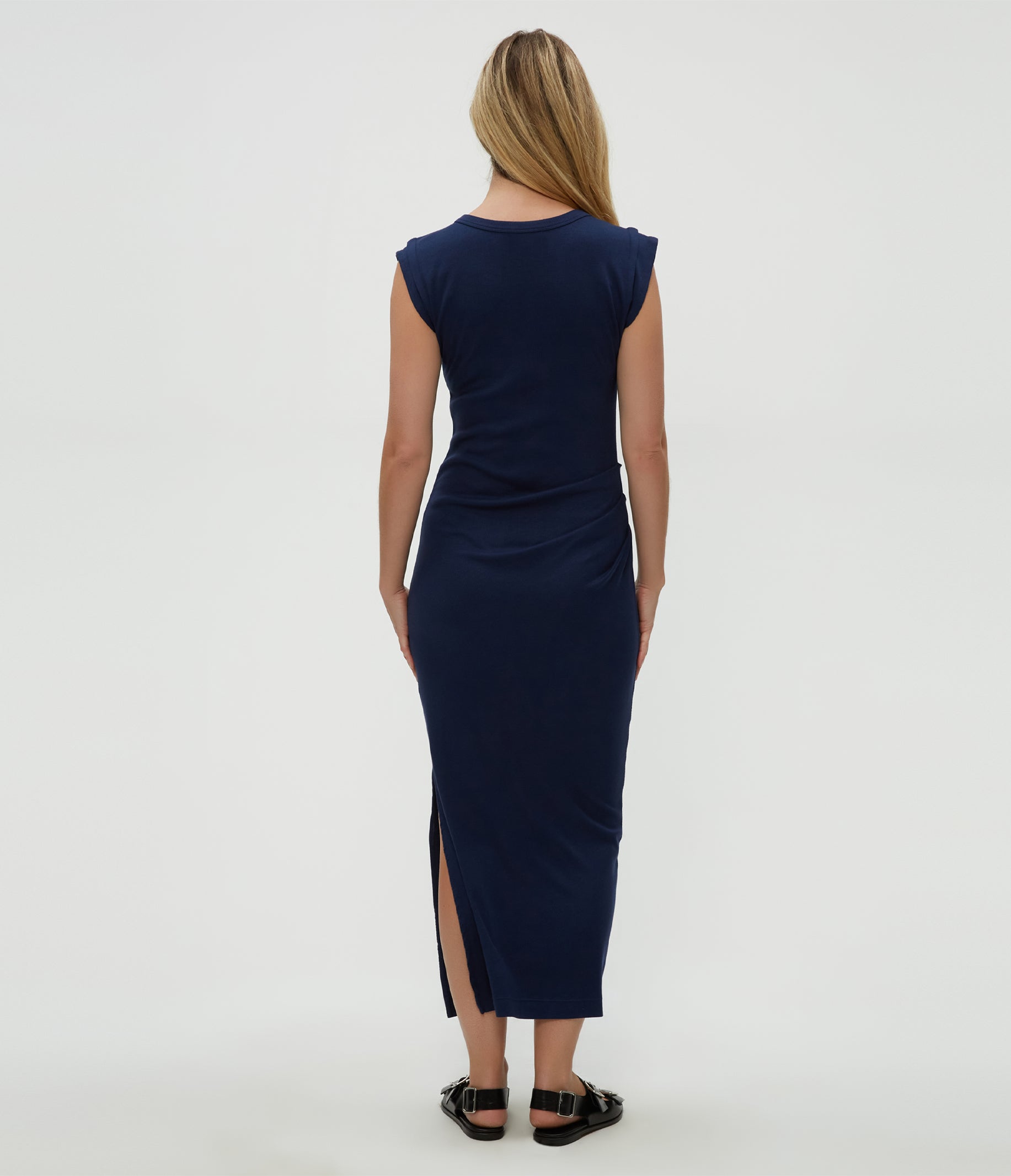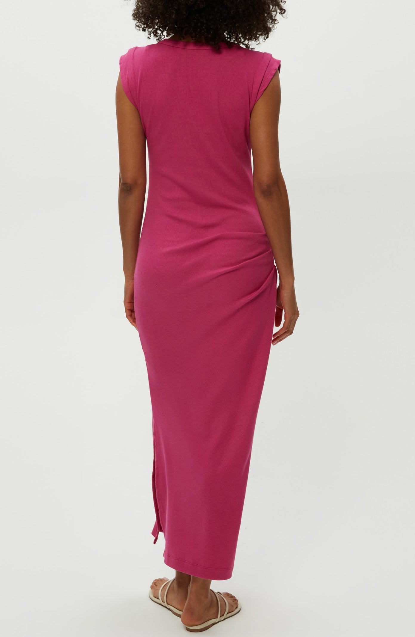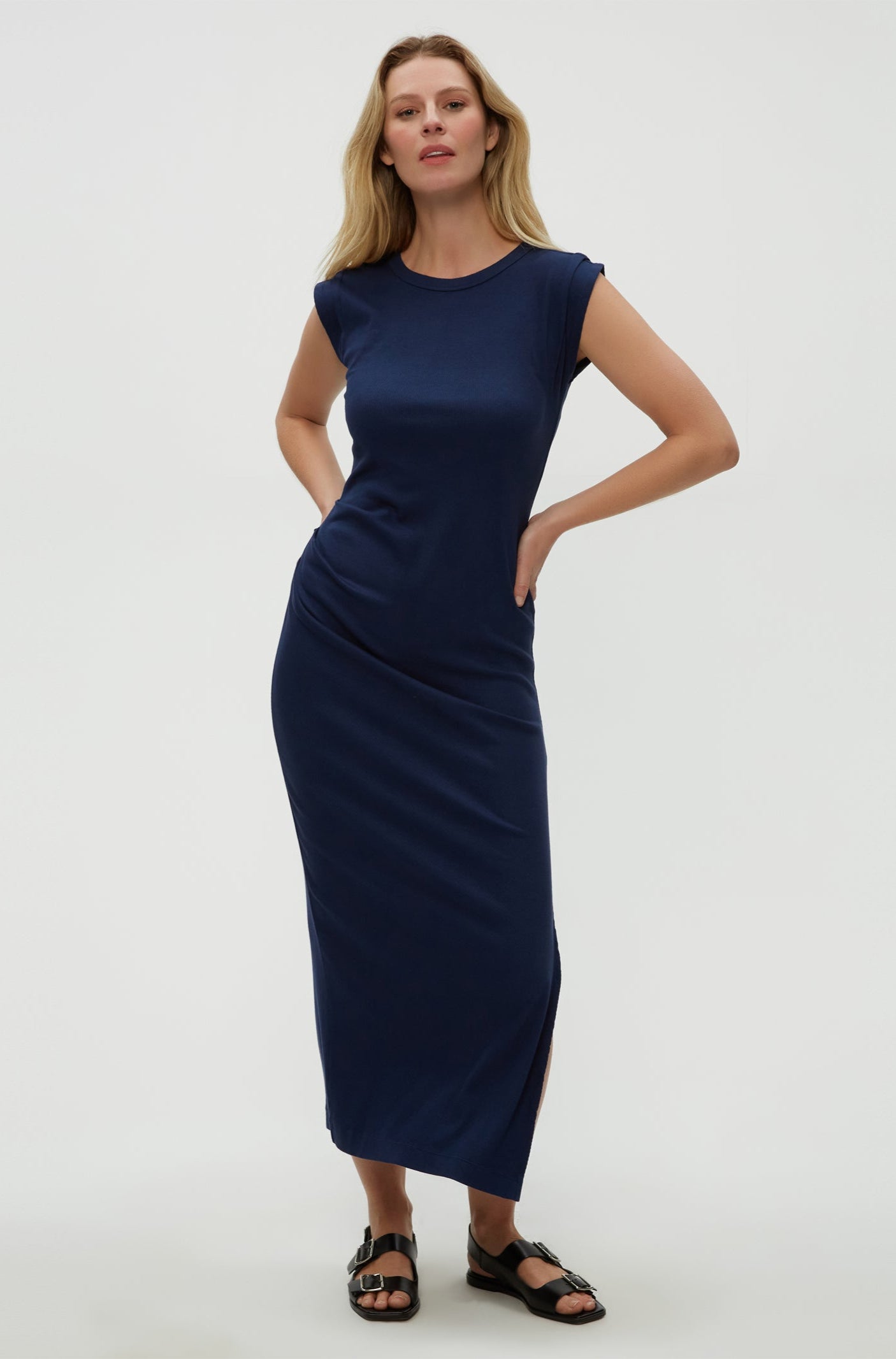 Get ready to make a statement in this Calliope Power Shoulder Maxi Dress! Featuring a bold power shoulder, asymmetrical pleating, and a side slit, this semi-fitted dress will elevate your look while keeping you comfortable in our super-soft Ultra Rib fabric.