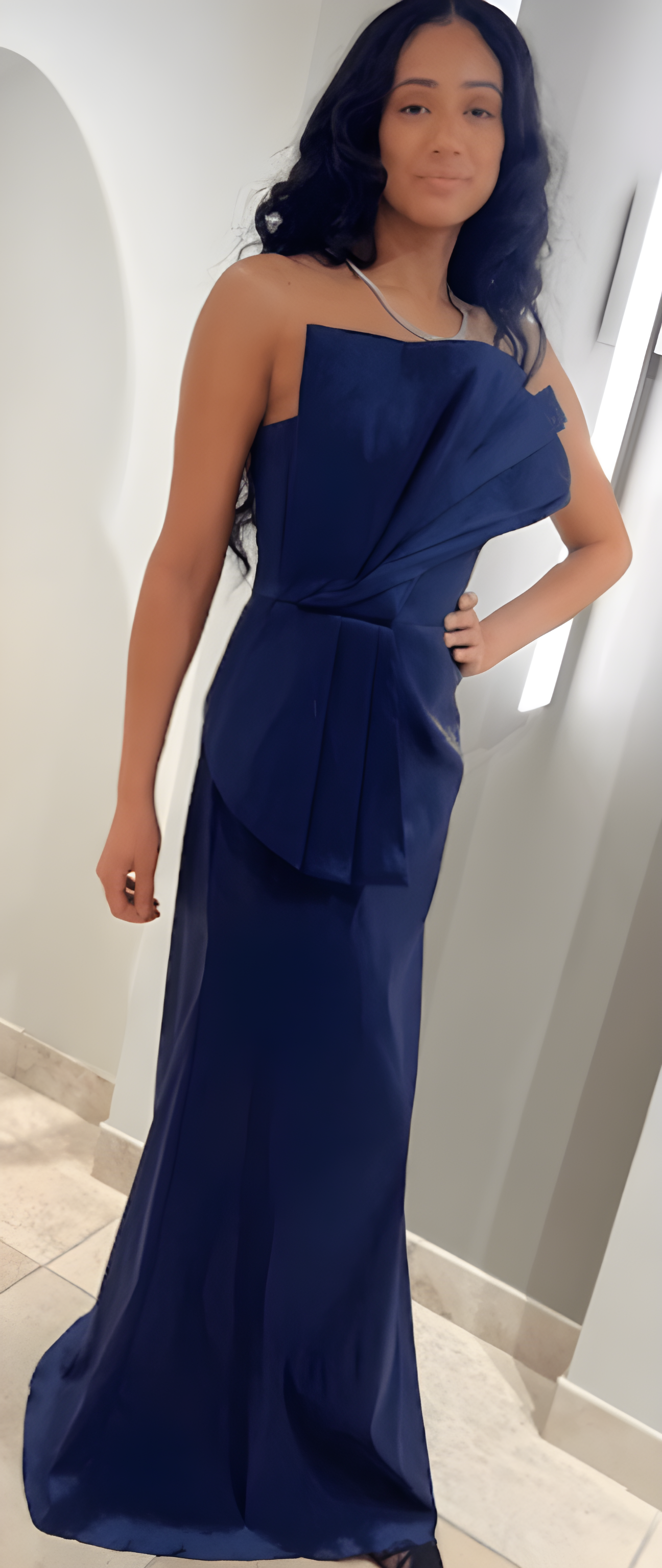 Swirl into the night with this Doppia Ventola Gown in captivating navy! This twirl-worthy dress features a flattering silhouette that's ready for your next grand entrance.