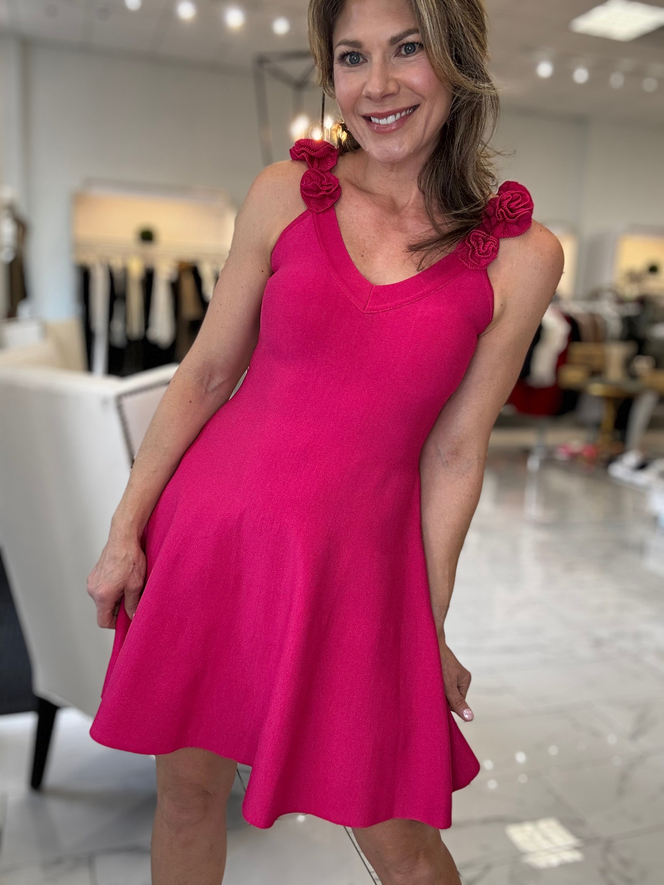 Release your inner goddess with the Red Isis Dress. This sophisticated piece features an enchanting V-neckline and a flattering flared cut. The artistically embroidered roses on the straps add a touch of refined femininity. Perfect for any occasion, this dress is a statement of your unique style and personality.