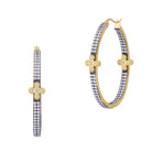 Expertly crafted with Freida's signature attention to detail, the Pavé Double Row Clover Hoop Earrings blend everyday elegance with artisanal design. Hand-set pavé stones create radiant sparkle from every angle, while matte gold clovers deliver a refined, feminine aesthetic. Lightweight and luminous, these versatile hoops transition seamlessly from office to evening wear.