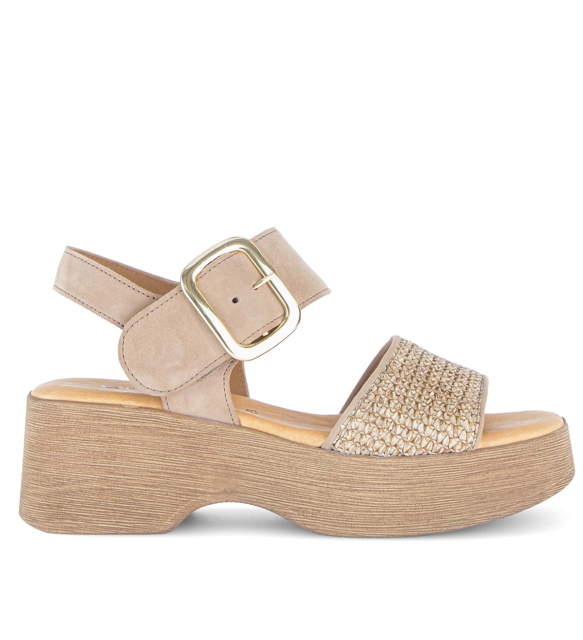 You'll effortlessly embrace summer style with the Gabor Raffia Lala Sandal. Trendy raffia details create an eye-catching design, while the natural-look sole adds distinctive character to every step. The strappy silhouette offers both comfort and sophistication—a must-have highlight for the season ahead.