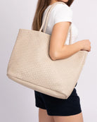 Taylor Woven Leather Tote Bag - Off White