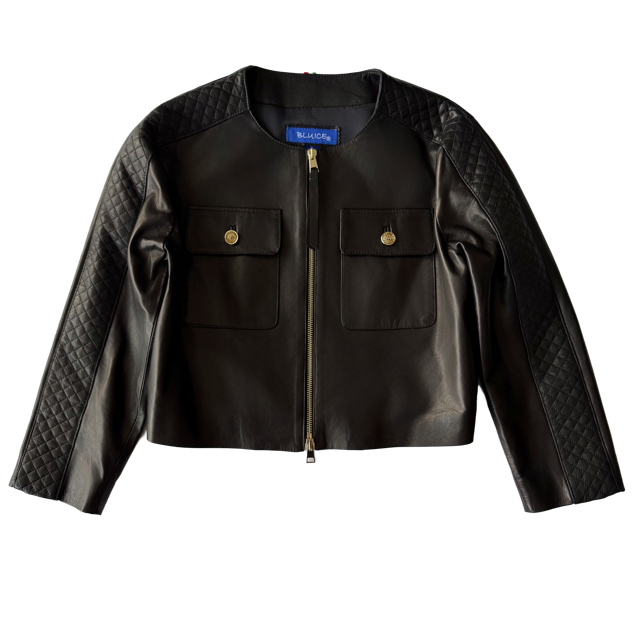 Cut & Stitched Cropped Lamb Leather Jacket