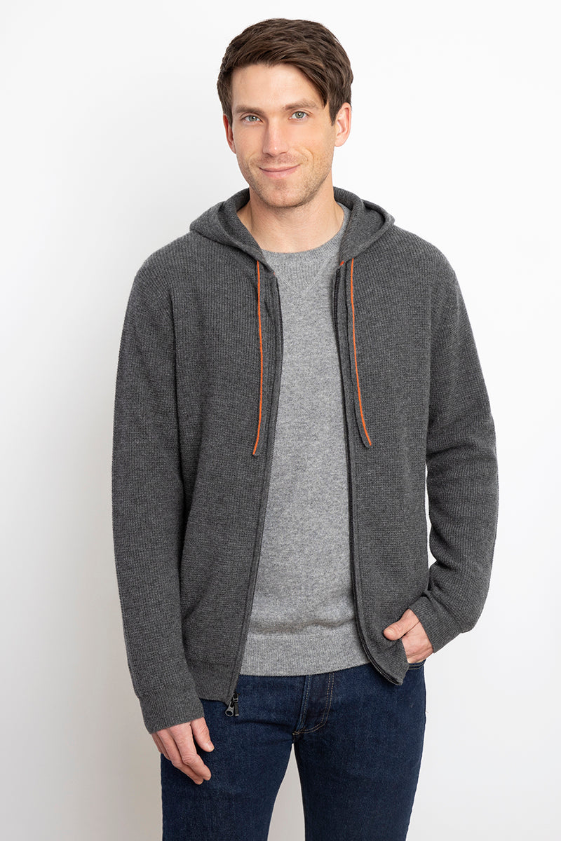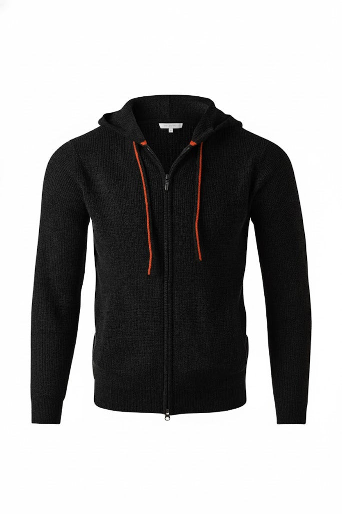Experience unmatched luxury with the Thermal Zip Hoodie, expertly crafted from 100% pure cashmere. This men's sweater combines exceptional softness with lasting durability, providing a sophisticated fit that maintains its shape while offering a subtly relaxed silhouette over time. Perfect for elevating casual looks or layering for more formal occasions, it delivers superior comfort and timeless style. Designed for those who appreciate refined craftsmanship, this hoodie is a versatile essential that enhances any wardrobe with its blend of elegance and cozy warmth.