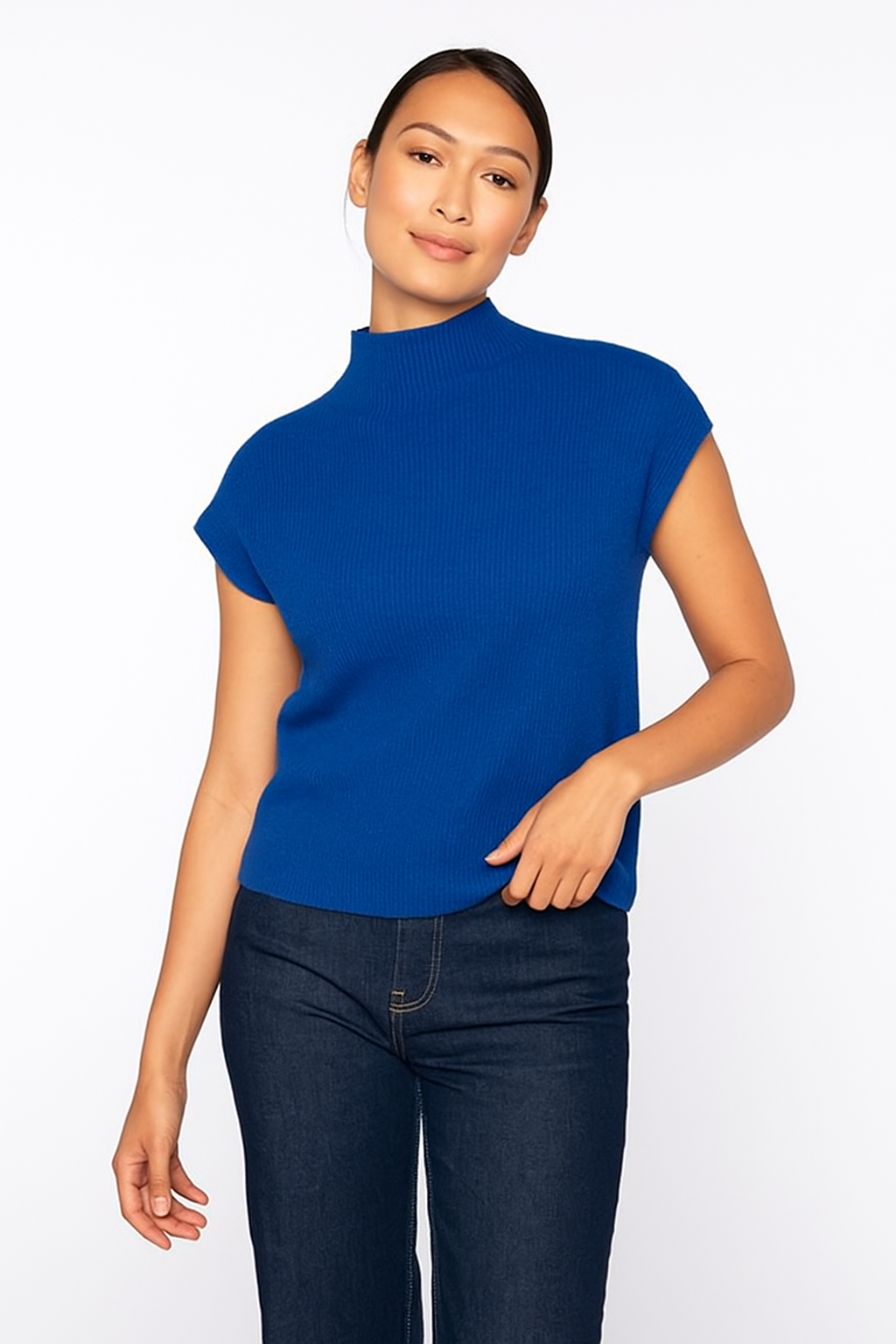 The Rib Cap Sleeve Mock, crafted from 100% premium cashmere, combines luxurious softness with a refined design. Its ribbed texture and elegant cap sleeves create a timeless silhouette that adapts effortlessly from professional environments to chic evening occasions. Tailored to a true-to-size fit, this top delivers comfortable wear alongside a polished look.
