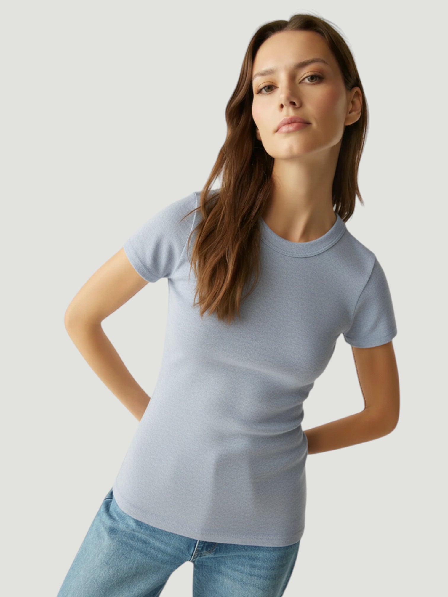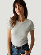 With a hint of sparkle, the Fallon Crew Neck Top features short sleeves and a slim, clean finish designed for a flattering fit every time. Crafted from our signature Shine fabric—form-fitting, soft, and subtly luminous—this tee delivers effortless elegance for any occasion.