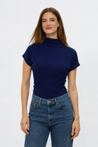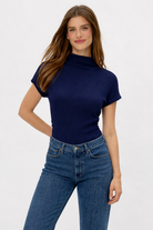 Lara Ribbed Mock with Snap Back - Nocturnal