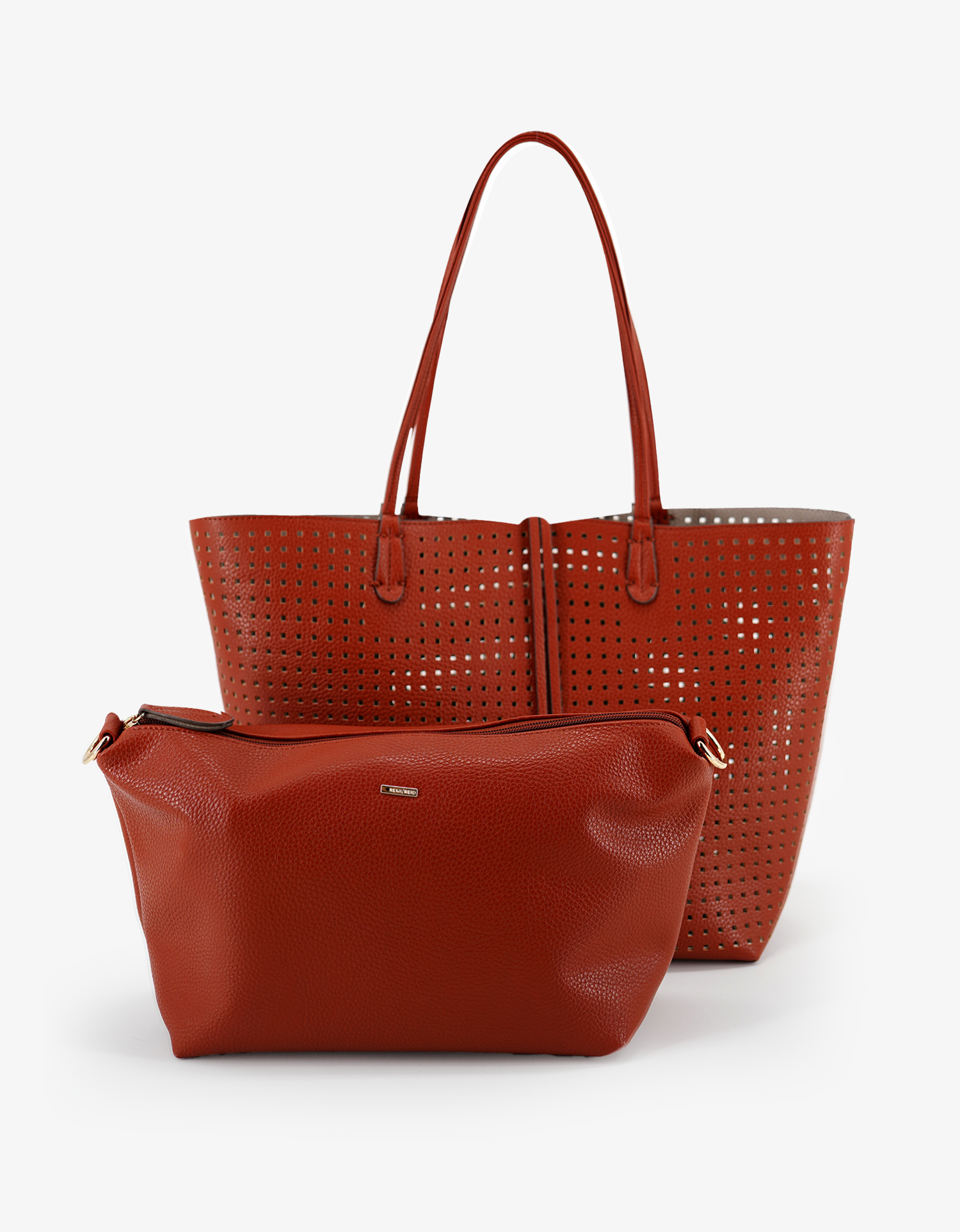 Departure Tote - Perforated Square - Burnt Terracotta/Putty