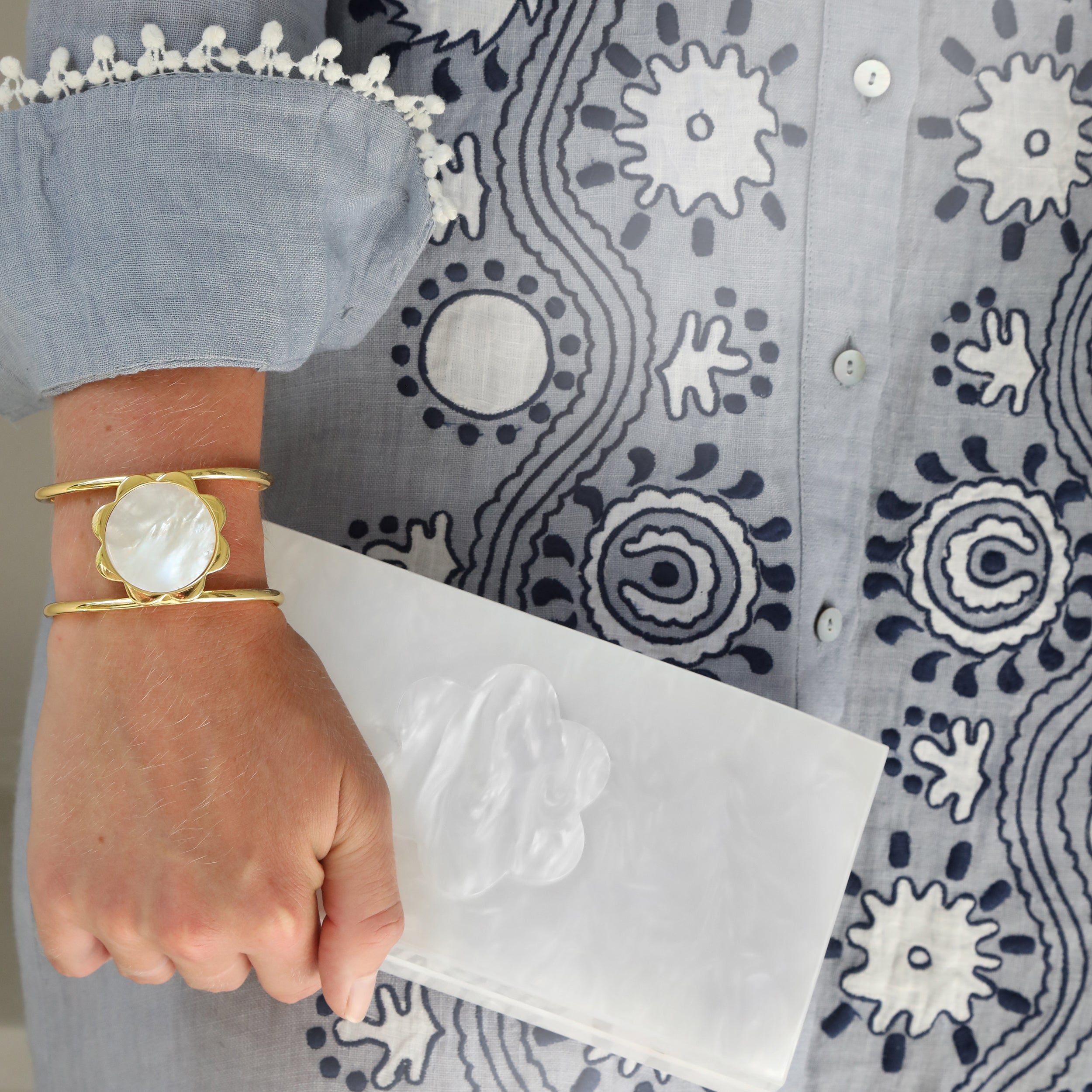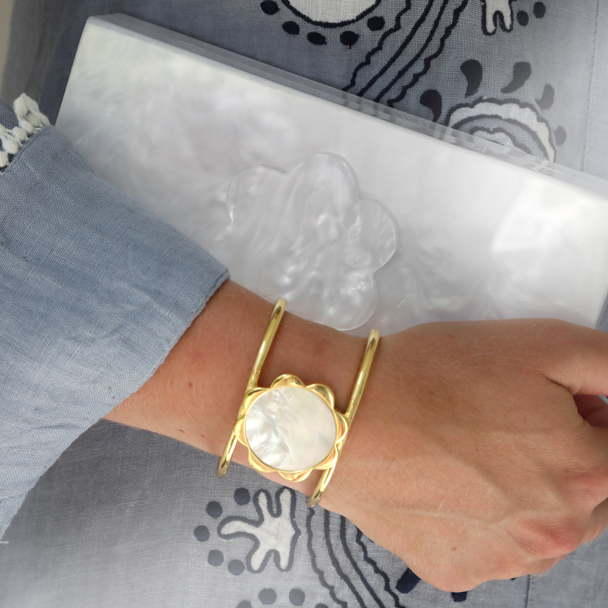 - 14k gold dipped Flower Cuff small with mother of pearl