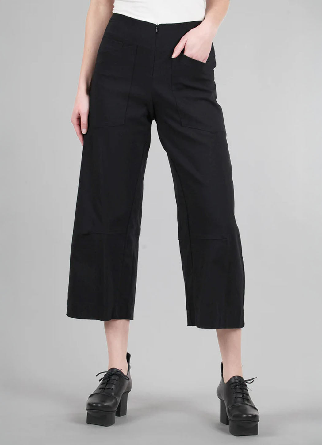 Cropped flare pants in Porto's stretchy twill with a flat waistband featuring interior grippers to prevent slipping. Slim through the hips with wide legs that flare just above the ankle for a flattering silhouette. The fabric moves easily through the legs, offering comfort without bulk.