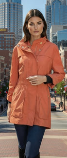 The TESS Jacket combines practical protection with timeless style. Engineered with water-resistant fabric to keep you dry through rainy seasons, this versatile piece transitions seamlessly from season to season. The breathable material ensures comfort all day long, while the adjustable waist cinches to flatter your silhouette. Finished in luxurious satin with your choice of gleaming GOLD or SILVER hardware, TESS is the jacket that works as hard as you do—rain or shine.