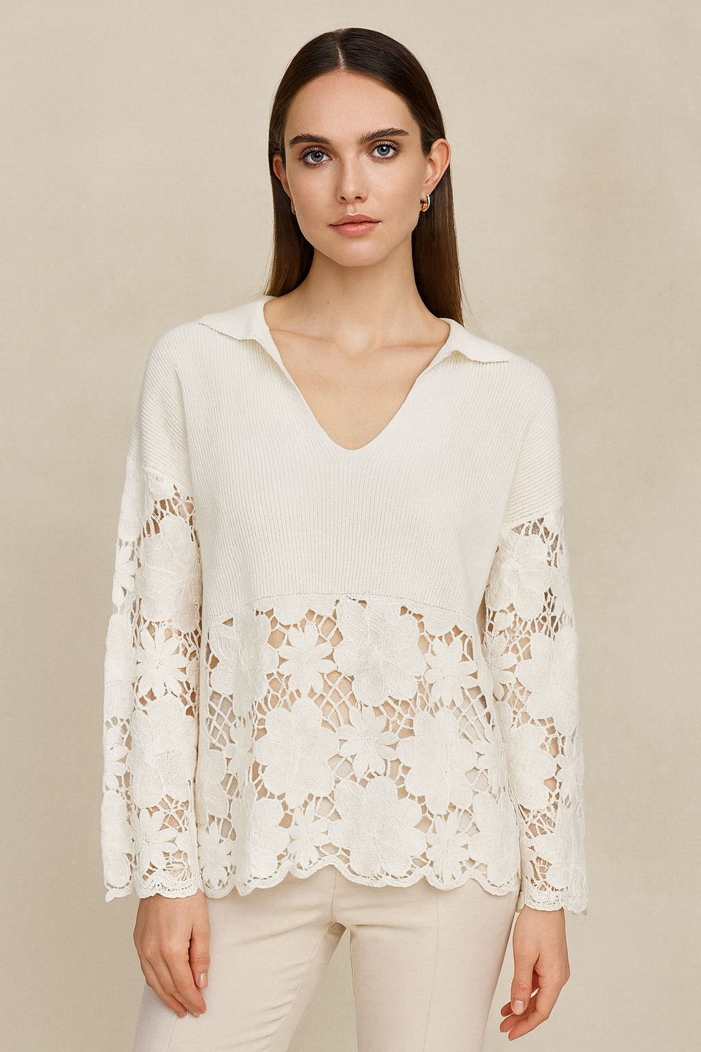 Collared Sweater with Embroidery