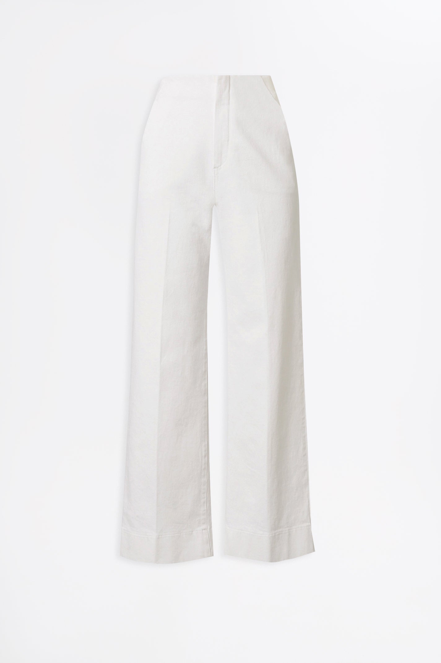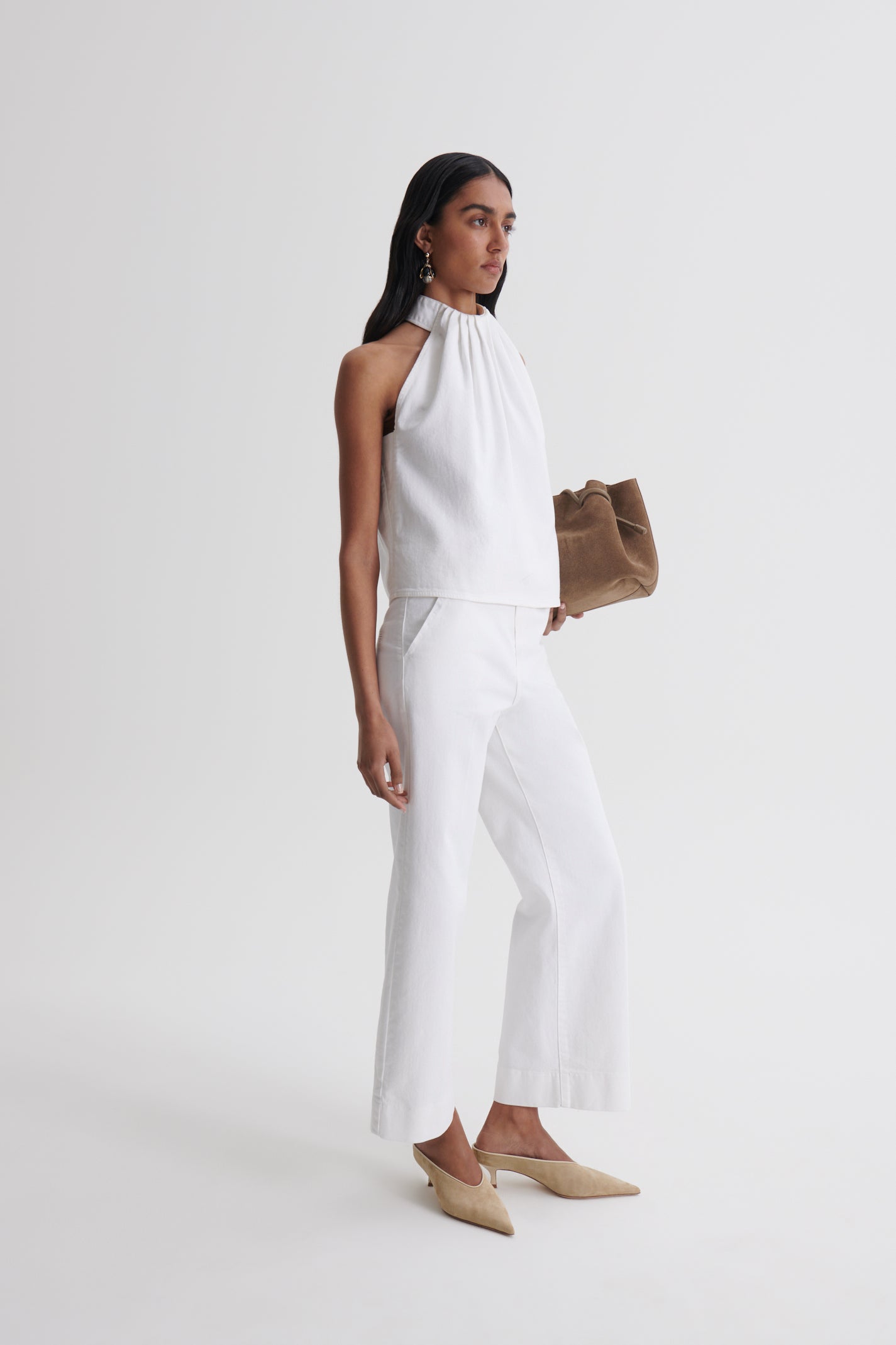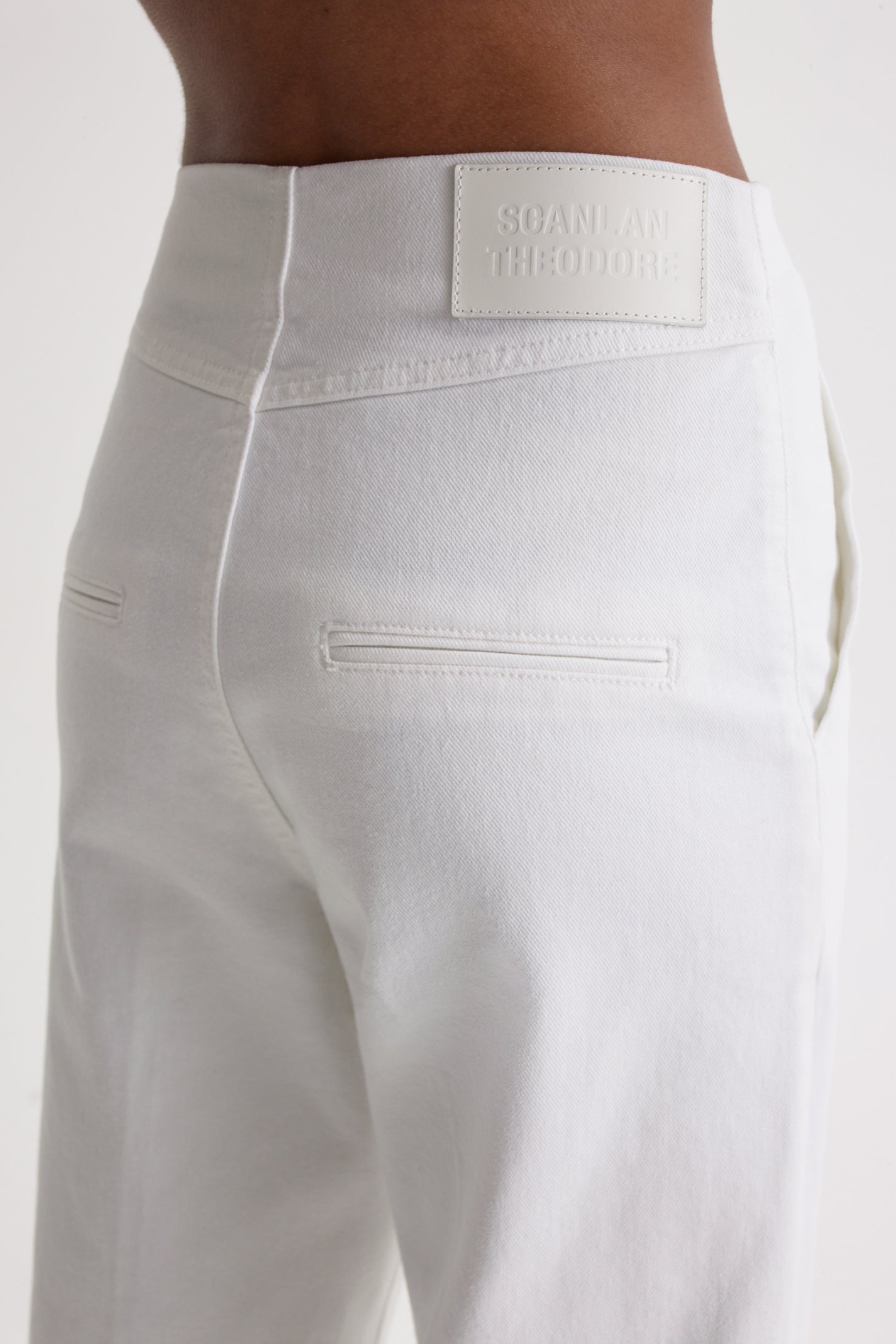 Crafted to lengthen the leg, the Denim Cropped Jean embraces a flattering fit. Featuring a flared hem, functional side and back pockets, and concealed zip fastening with hidden-button closure.