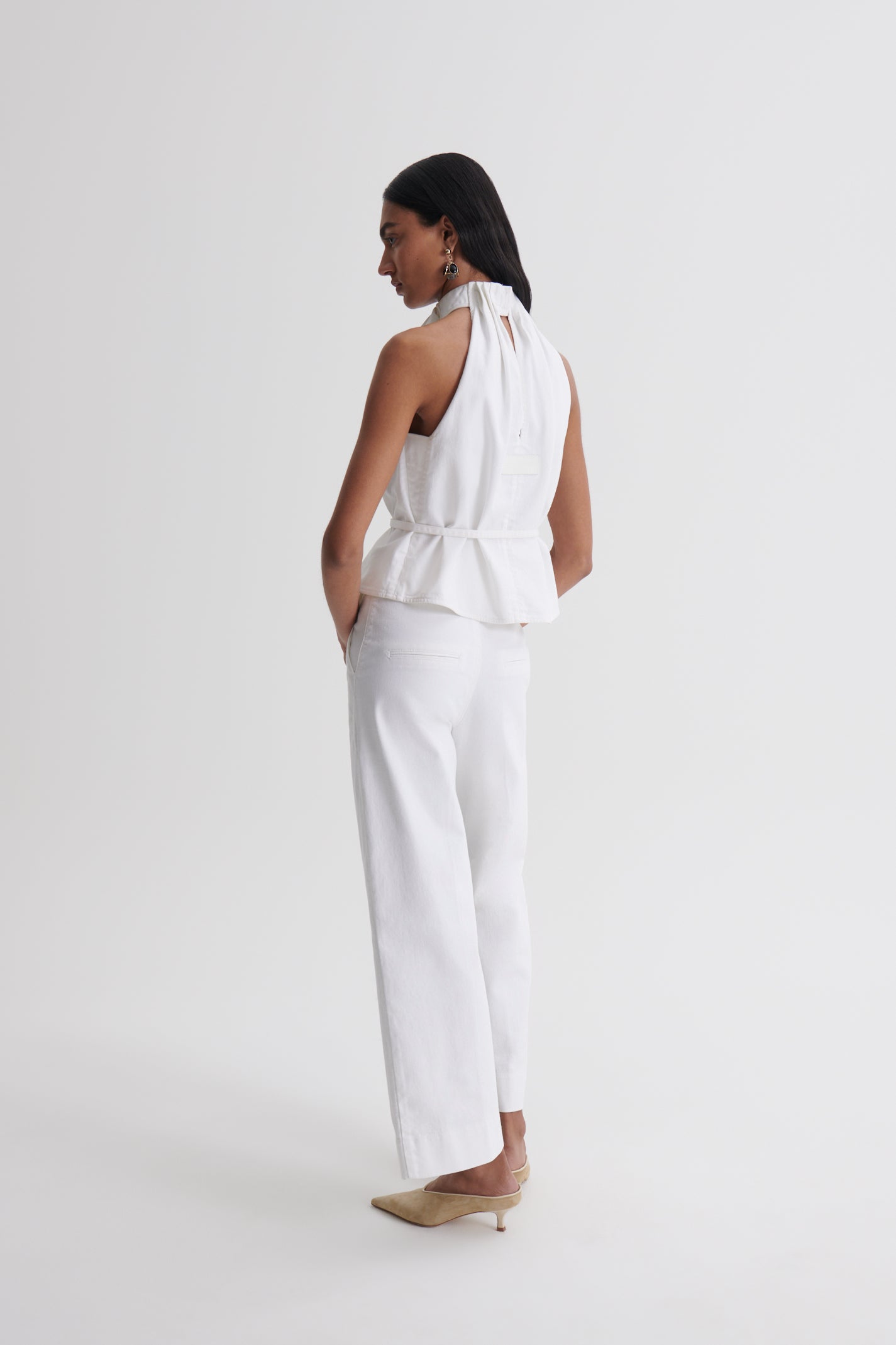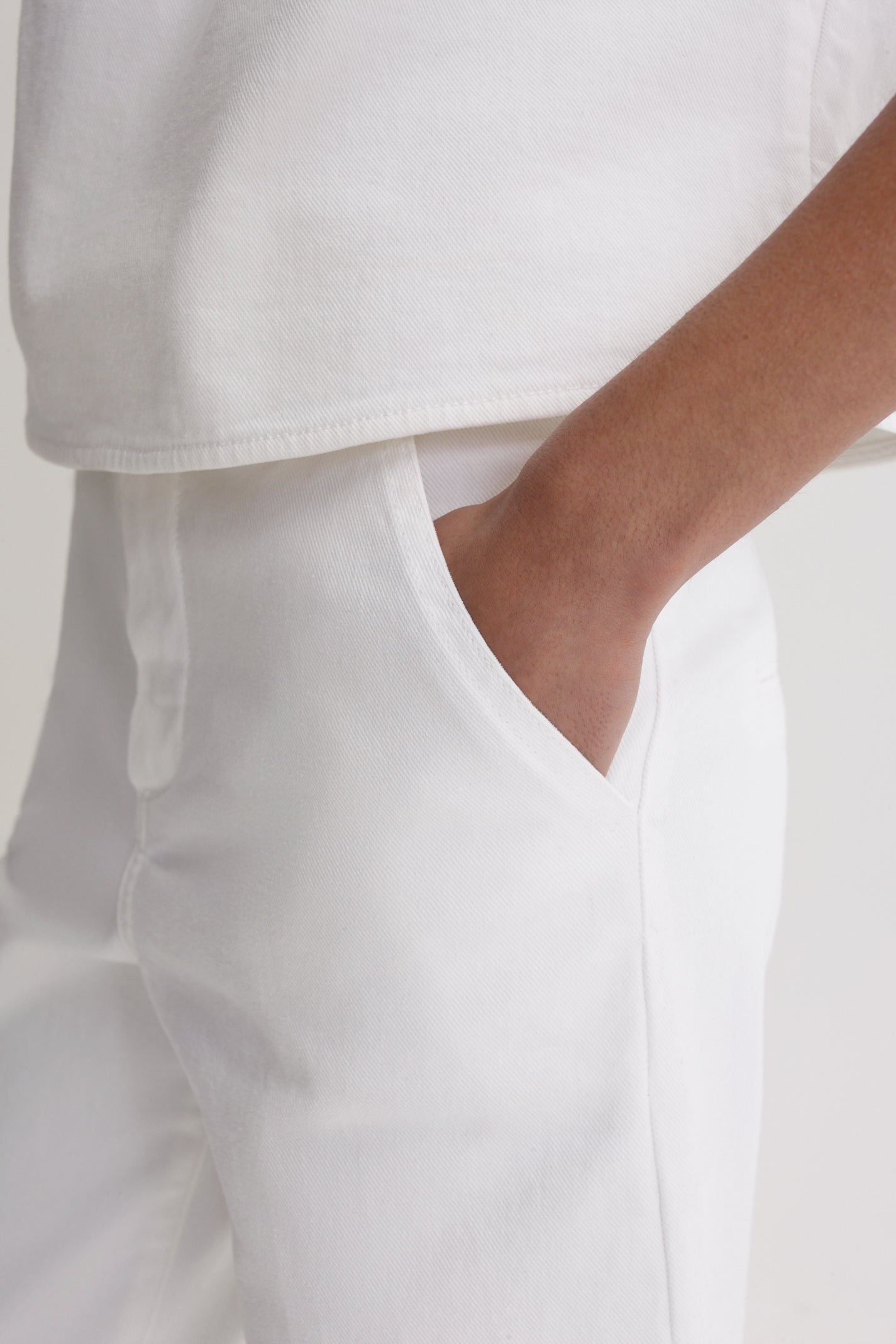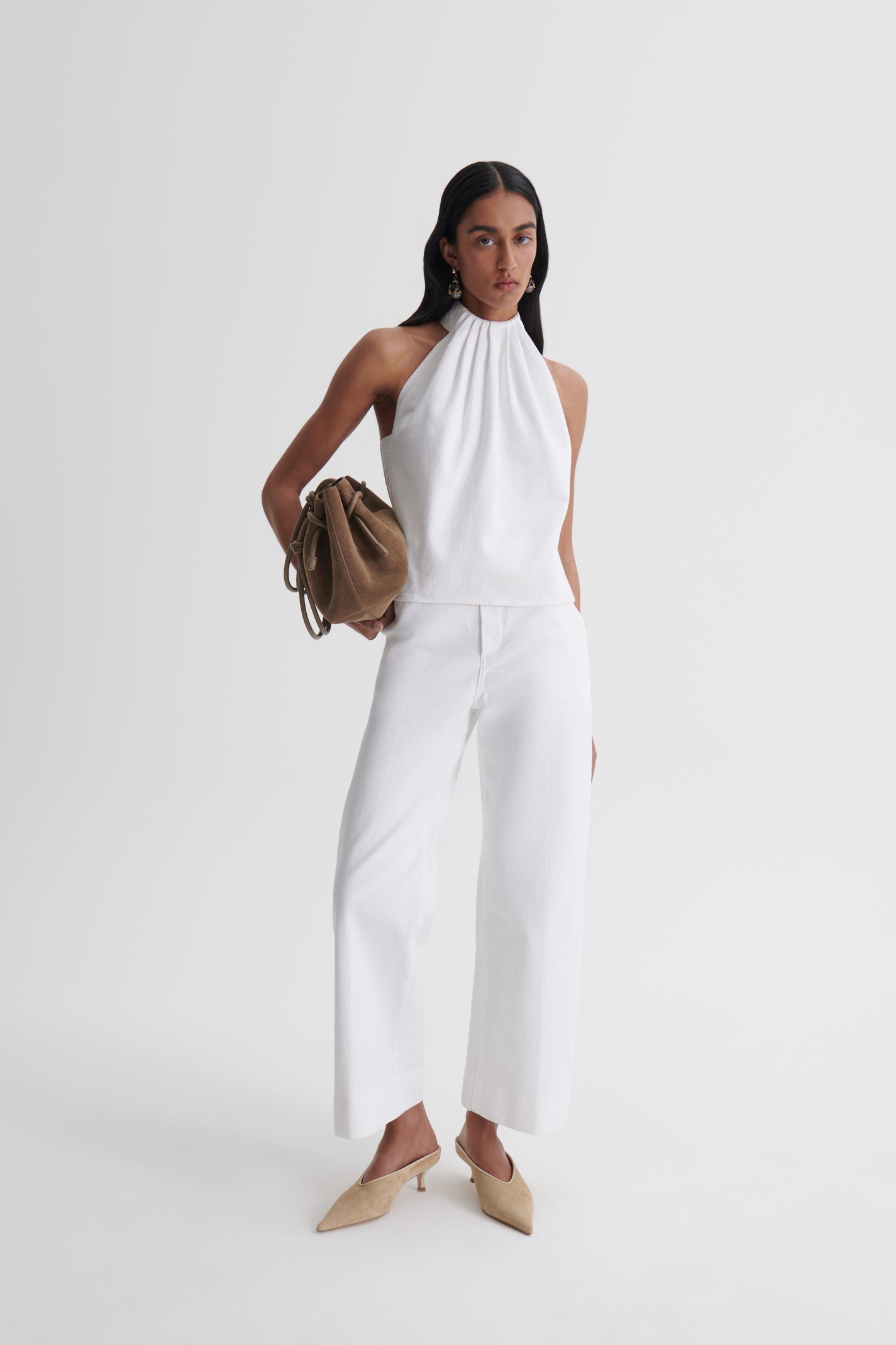 Crafted to lengthen the leg, the Denim Cropped Jean embraces a flattering fit. Featuring a flared hem, functional side and back pockets, and concealed zip fastening with hidden-button closure.