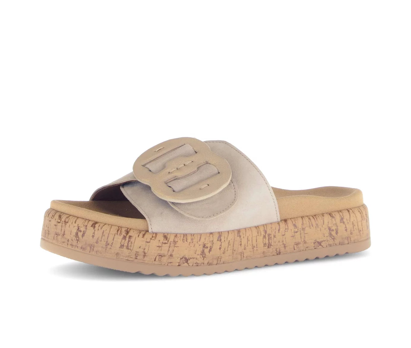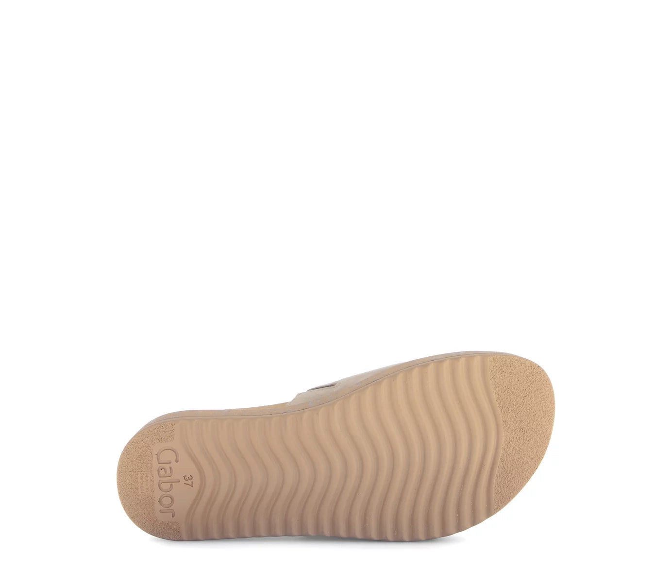 Slip into style with the Samta Slide. Made of luxurious suede in a trendy oak and champagne color, this slipper from Gabor exudes comfort and sophistication. Perfect for lounging or a night out on the town.