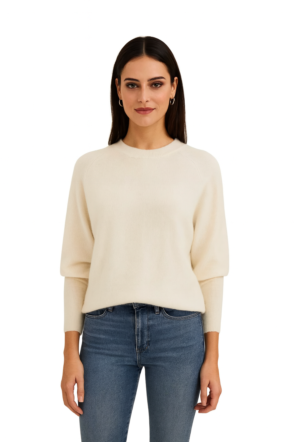 The Olive Sweater by Cortland Park offers refined comfort in 100% pure cashmere. This snow white cardigan features a classic crewneck and long sleeves, ideal for layering over camisoles or tank tops during cooler days. Its pull-on style provides convenience without compromising luxury.