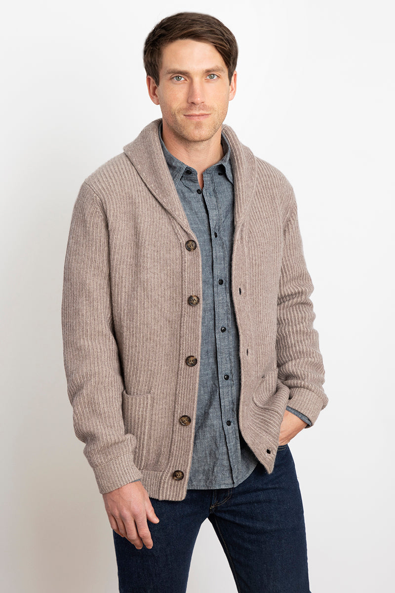 This beautiful Rib Shawl Collar Cardigan is crafted from 100% CASHMERE for optimal style and comfort.