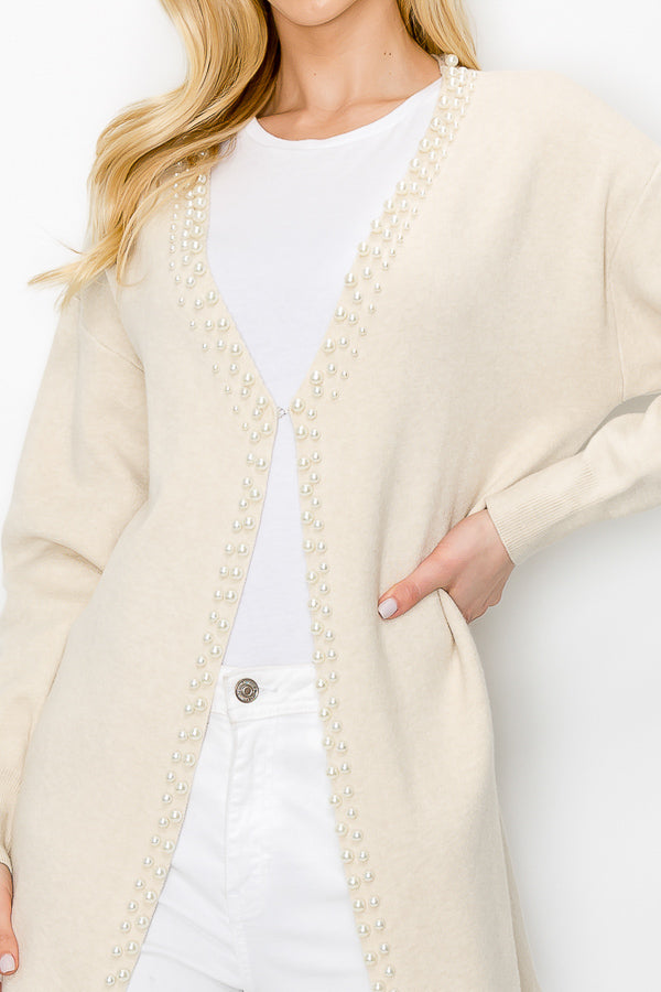 The Syani Knitted Cardigan combines timeless elegance with modern appeal. This beautifully crafted piece features pearl accents that catch the light, adding sophistication to any outfit. Made from premium knit material, it provides comfortable warmth while maintaining a refined silhouette. Layer it over your favorite basics or wear it as a standalone statement piece. Ideal for creating polished looks that work from office to evening, this cardigan is a must-have addition to your collection.
