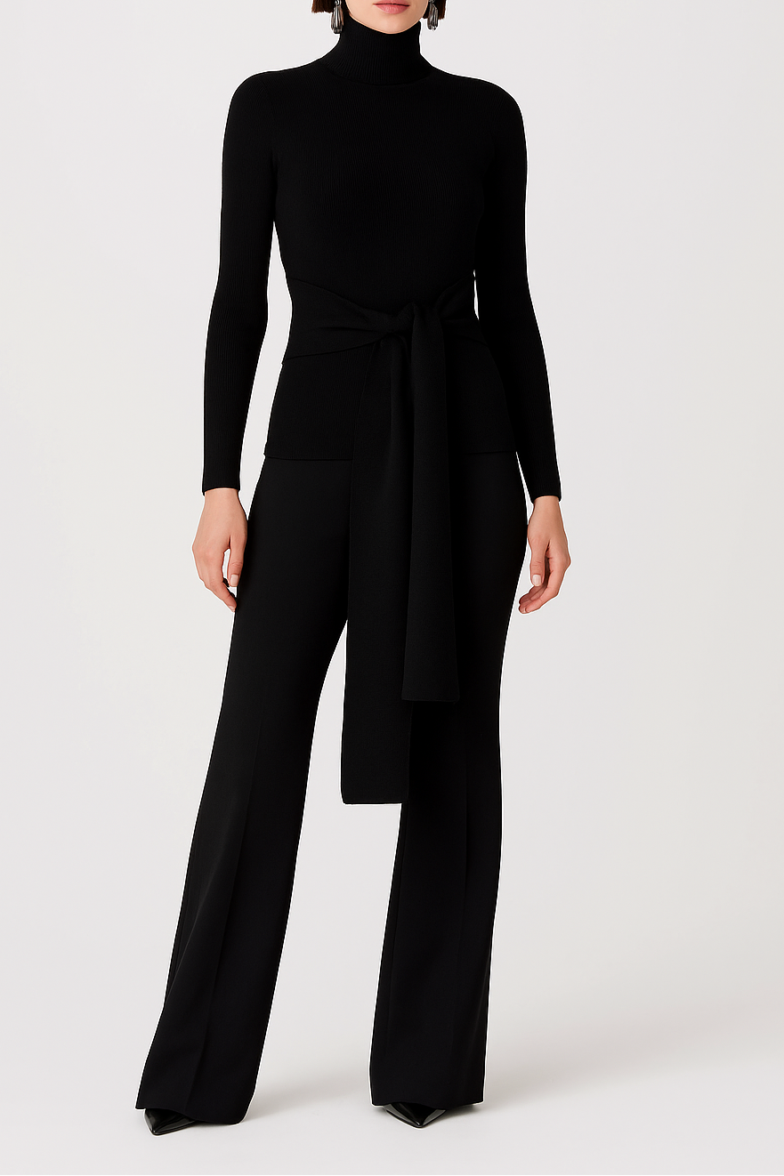 The Brielle Long Sleeve Tie Front Turtleneck combines timeless sophistication with modern versatility. Crafted with a refined turtleneck silhouette, this piece features an elegant tie-front detail that allows for customizable styling and layering options. The long sleeves provide warmth and coverage, making it an ideal choice for transitional seasons or layering under jackets and blazers. Whether dressed up for professional settings or styled casually, this turtleneck delivers polished elegance with practical wearability.