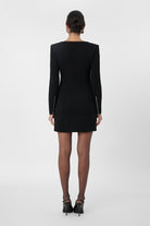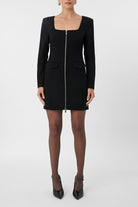 The Jordyn Zip Front Long Sleeve Mini Dress features a flattering square neckline that enhances elegance and a front zip closure for easy wear. Zippered sleeve cuffs add a contemporary edge, combining style with functional detail. This sleek design offers a modern silhouette perfect for sophisticated day or evening occasions.