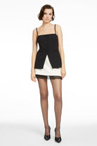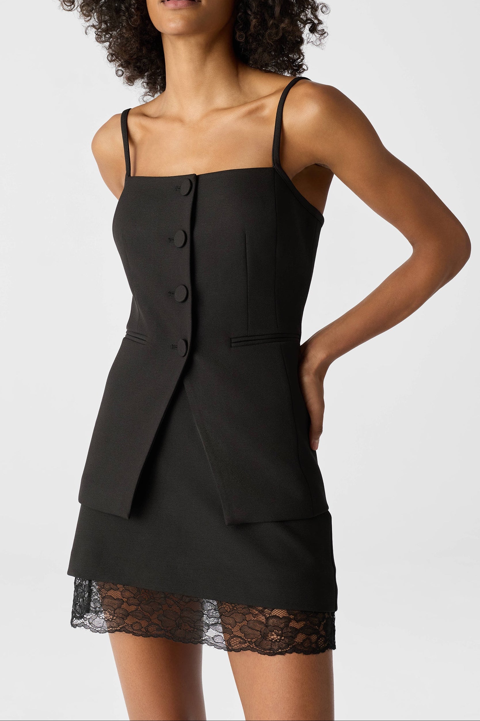 The Leland Lace Combo Mini Skirt is a mid-rise design that balances modern edge with feminine charm. Its delicate lace hem adds subtle texture and visual interest, making it a versatile piece for any wardrobe. Style it with a fitted knit for a polished casual look or pair with a crisp button-down for understated sophistication. Perfect for those seeking a skirt that transitions seamlessly from day to night.