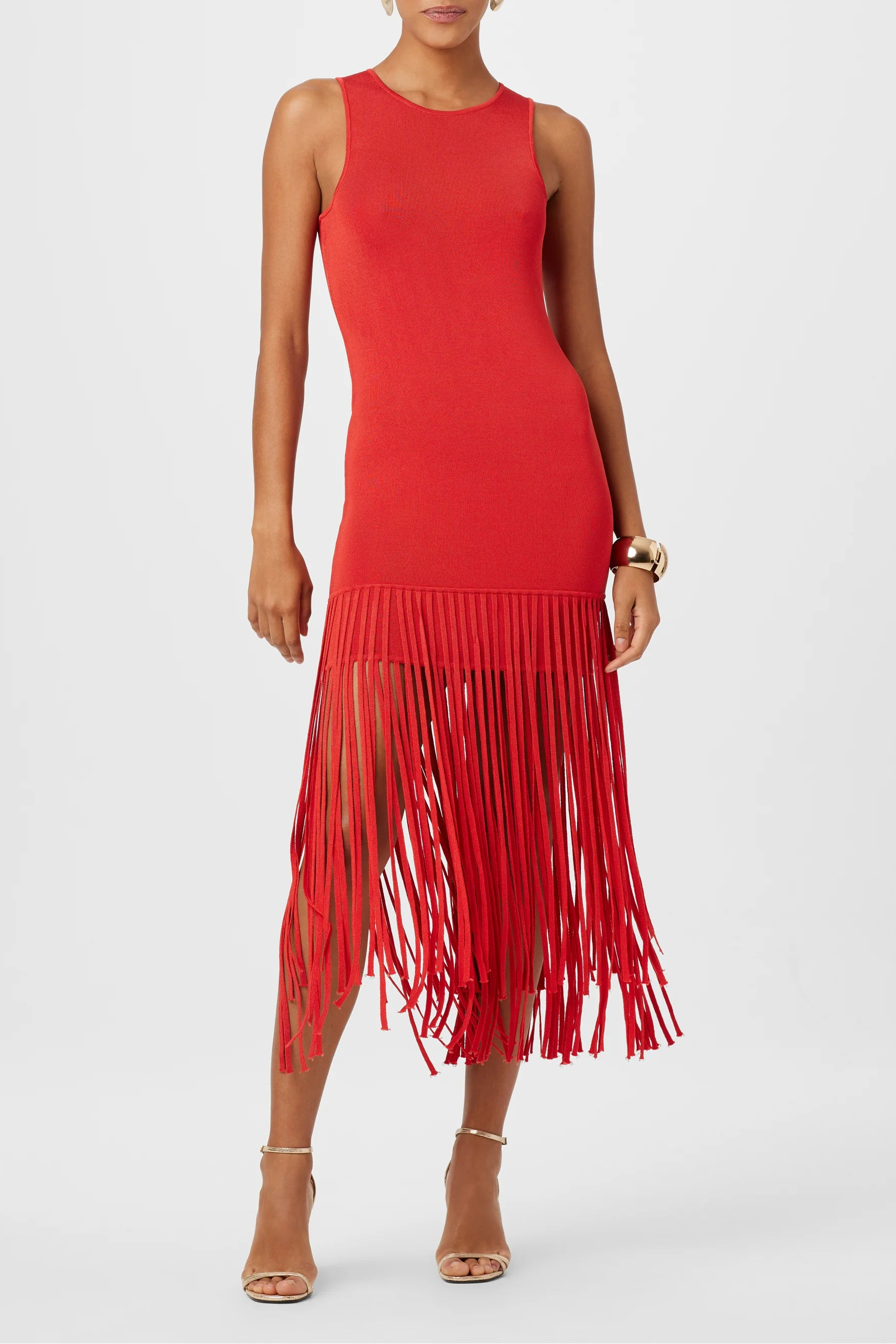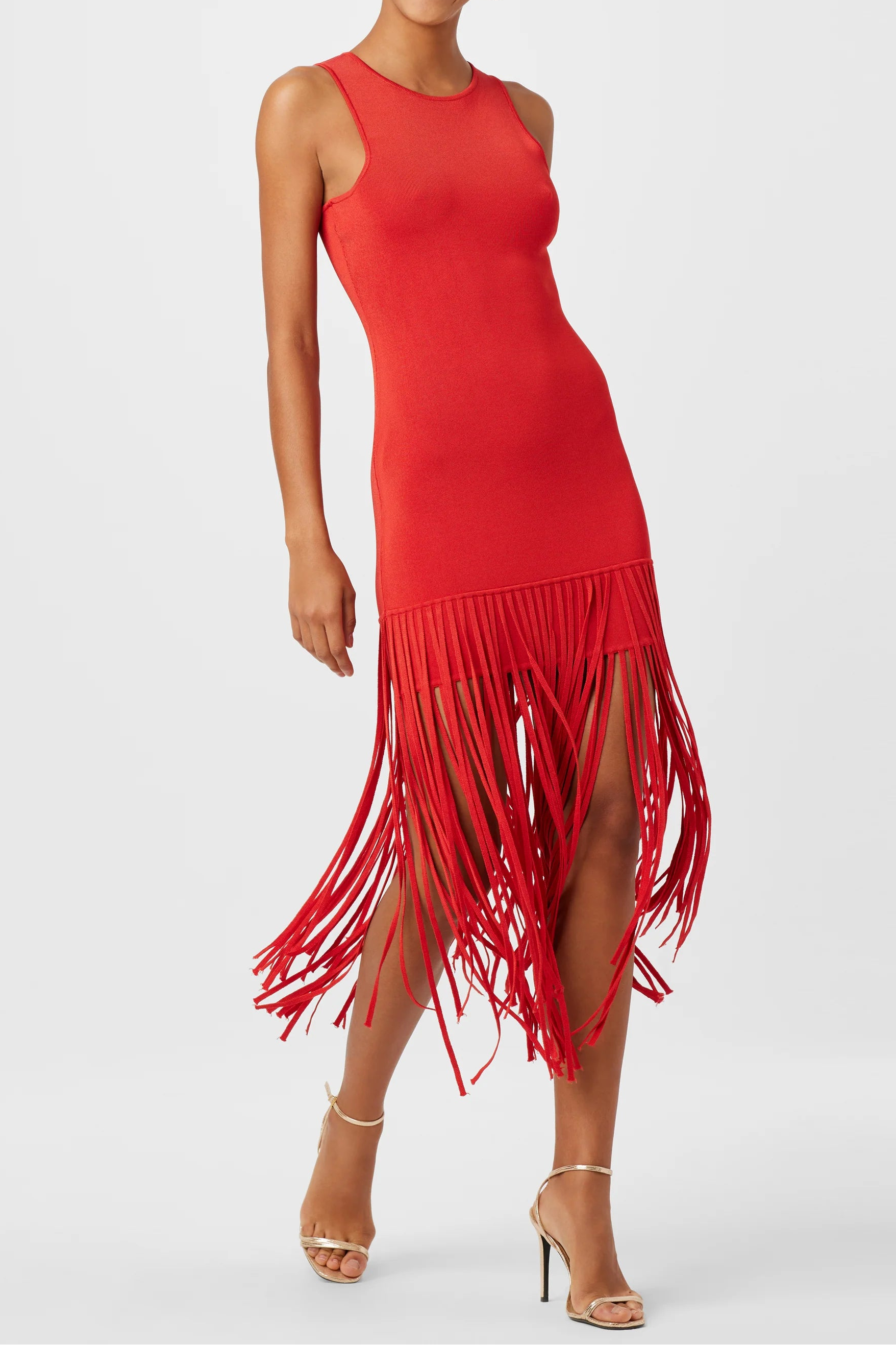 Add a touch of luxury to your wardrobe with the Margaux Mini Dress with Fringe. This sophisticated bodycon knit dress features a sleek black fabric and a fringe skirt that adds a touch of elegance to its chic silhouette. Soft and flattering, this exclusive piece is perfect for any occasion, day or night.
