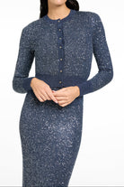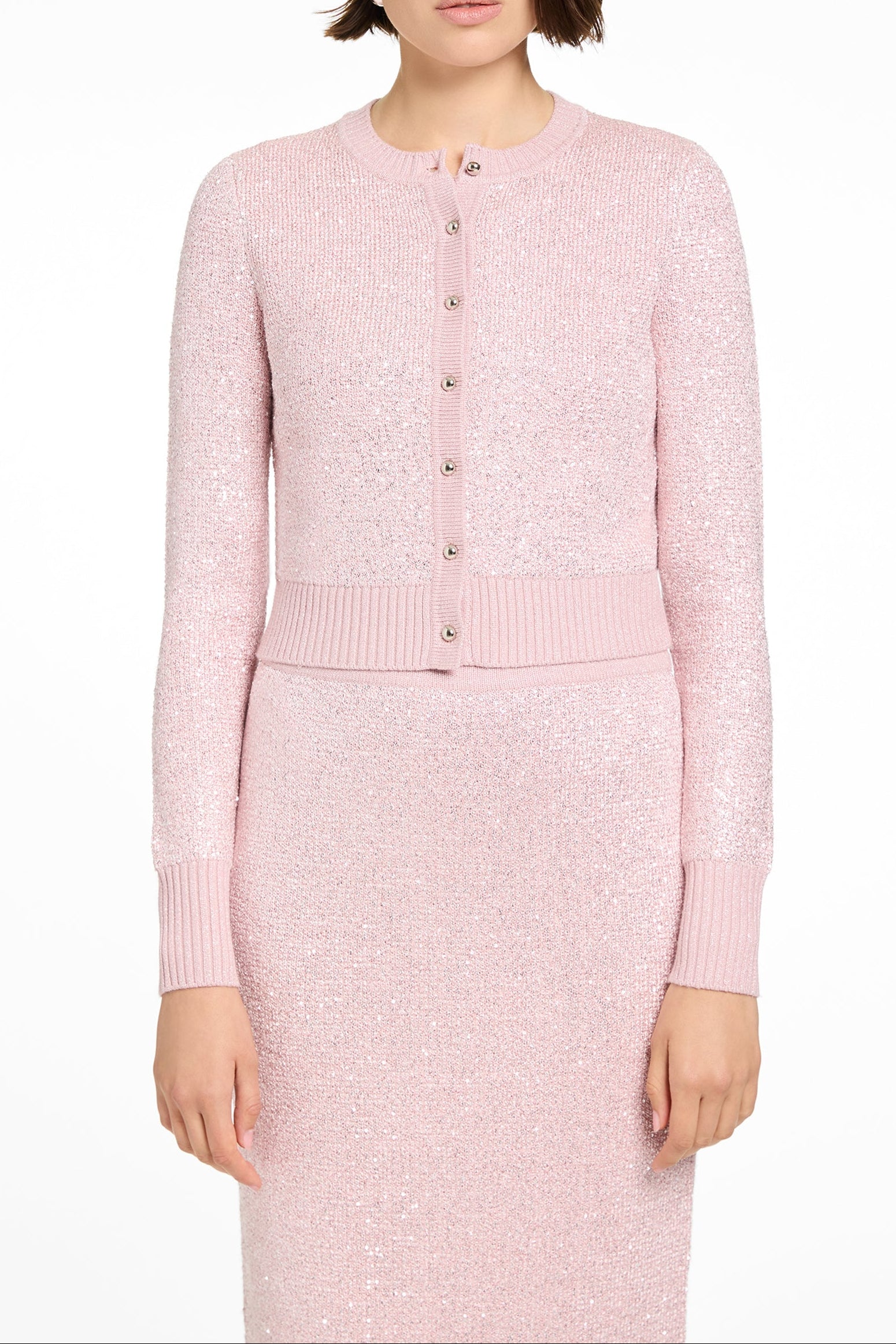The Mollie Classic Cardigan is a versatile crew-neck cropped layer designed for contemporary style. Its fitted silhouette and delicate sequin detailing deliver understated glamour without overwhelming your outfit. Wear it as a standalone piece buttoned to the collar, or drape it over a slip dress for layered sophistication.