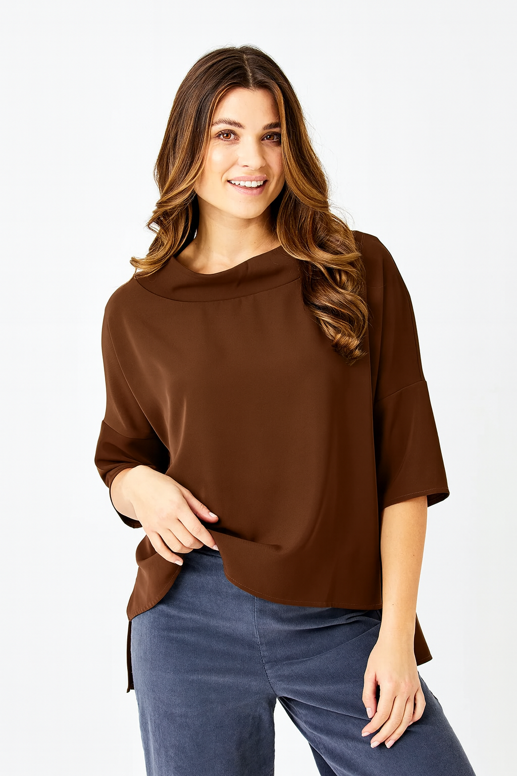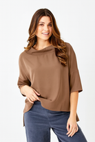 The Audrey Top combines luxurious satin fabric with a sophisticated cowl neck and relaxed fit for effortless elegance. Its hi-lo hem and wide cuffs add contemporary style, while the 3/4 length sleeves and oversized collar create a polished, refined silhouette. Ideal for both professional settings and social occasions, this versatile piece elevates your wardrobe with timeless charm and modern details.